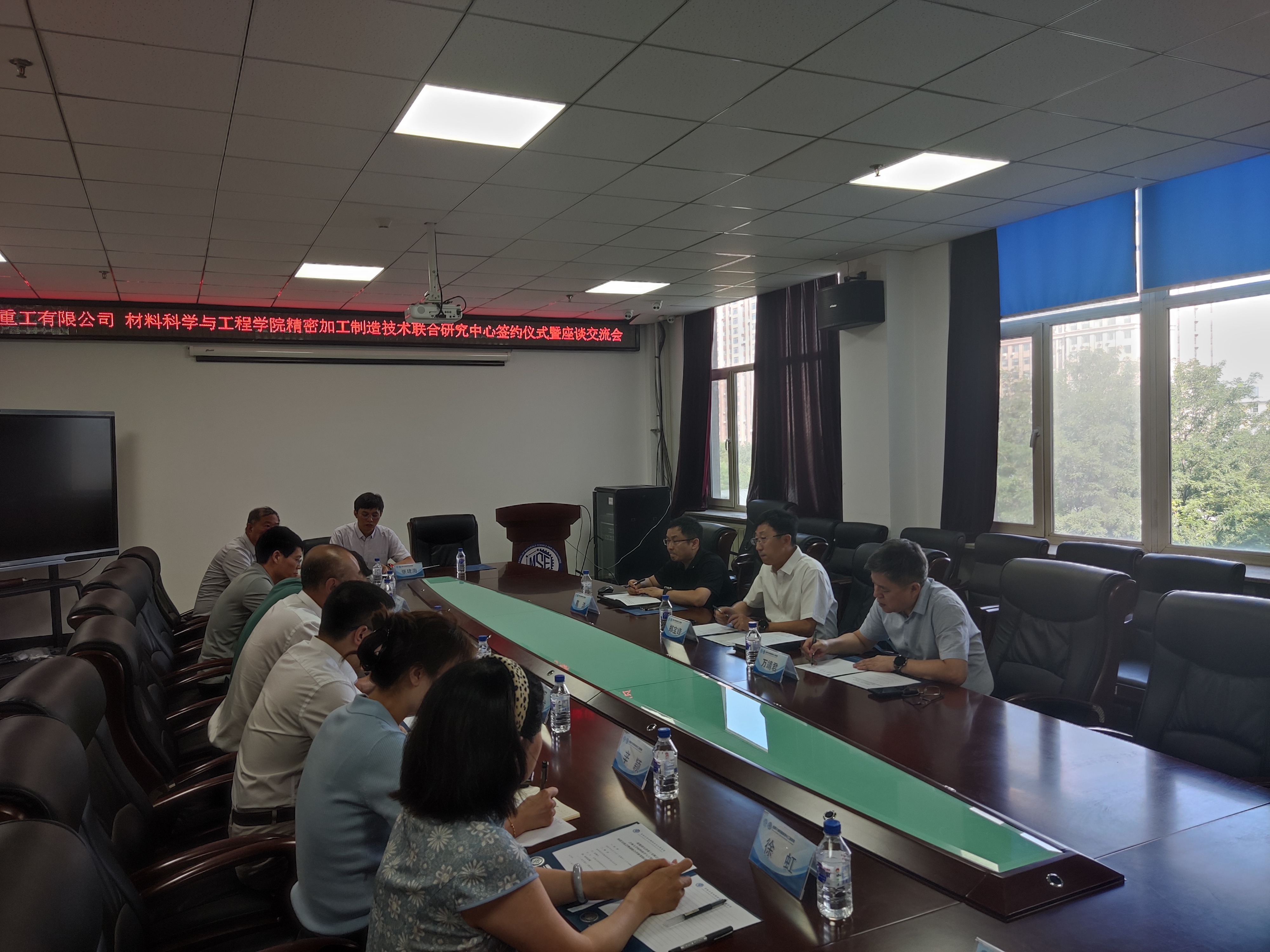 会议开始,刘远书记代表材料学院对郑宝峰一行表示热烈欢迎并对学院的发展情况进行了介绍。接下来,郑宝峰书记介绍了一重集团天津重工有限公司的基本情况及发展历史。杨春成副院长介绍了材料学院的科研情况。双方就下一步共同合作发展的前景和必要性给予了充分的肯定。会中,葛浩副总经理同王文权副院长、杨春成副院长、刘纯国所长等就双方现有技术储备、亟需解决的技术难点和意向合作领域进行了充分的讨论,为进一步深入合作打下了坚实基础。