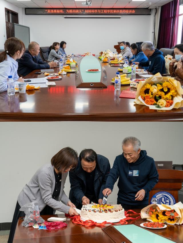 在机械与材料馆410会议室举办以“莫道桑榆晚,为霞尚满天”为主题退休教职工荣休座谈会,学院党委书记刘远、院长张立军、党委副书记曲贵文、党委副书记华蕊、副院长王文权、行政副院长辛颖、2020年以来退休的教师和在职教师代表加了本次会议。会议由行政副院长辛颖主持。