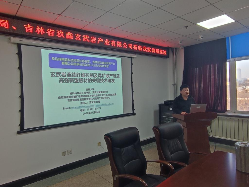 南岭校区机械材料馆410会议室举行。辉南县科技局局长孙立军、副局长张文波、吉林省玖鑫玄武岩产业有限公司董事长郭久民,女同av