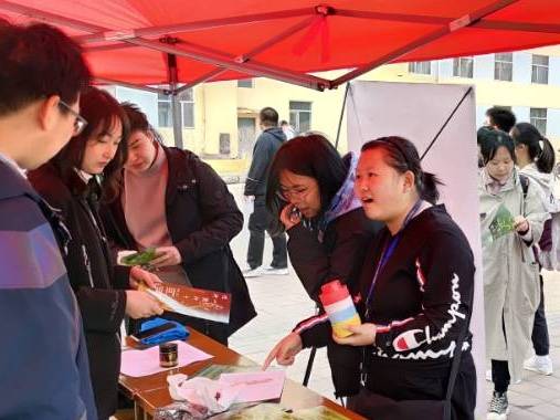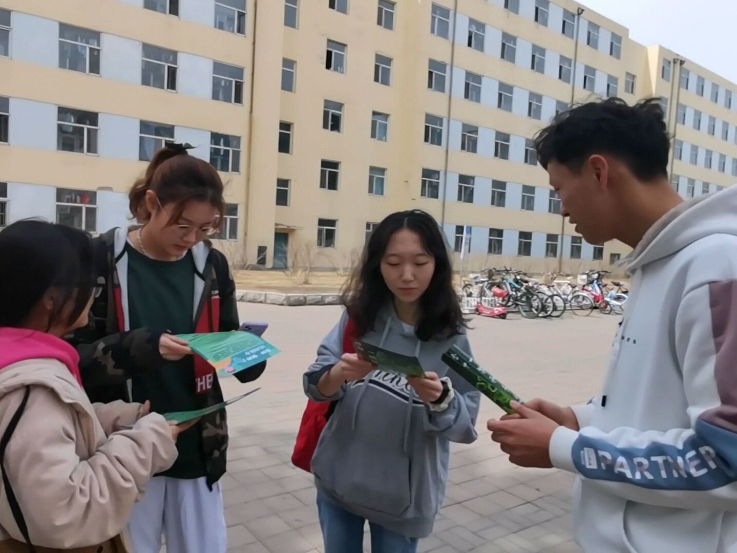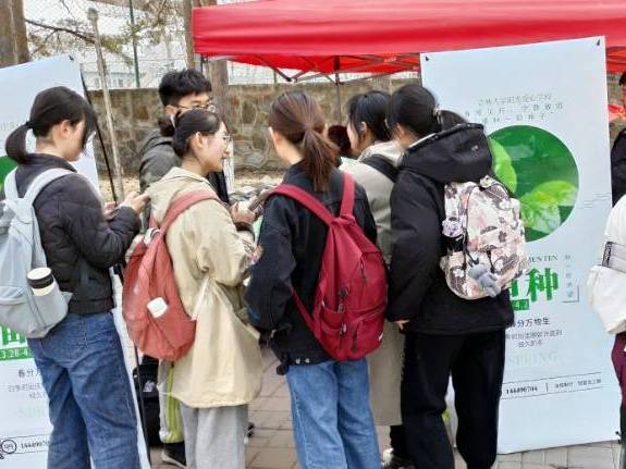 阳光爱心学校于二餐、四餐门前进行摆摊宣传“播种一颗种子”志愿活动。南岭校区全体学生均可参加活动。