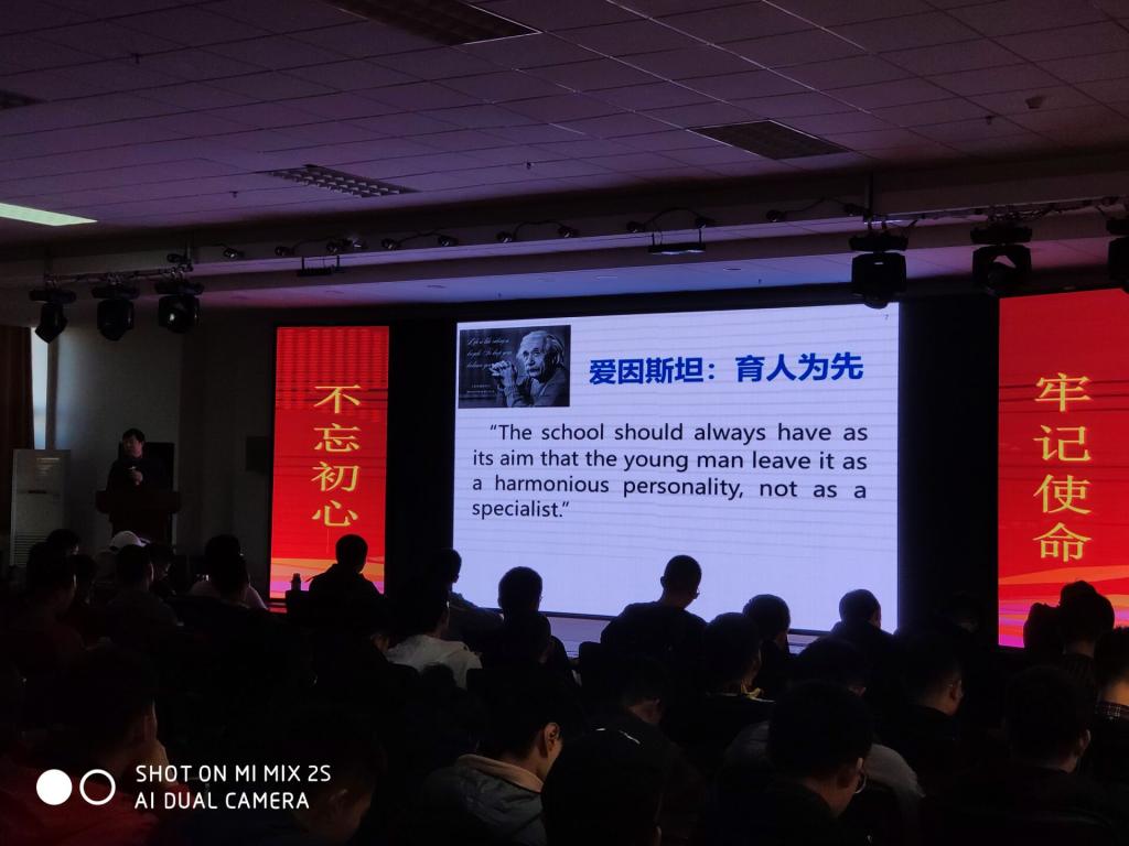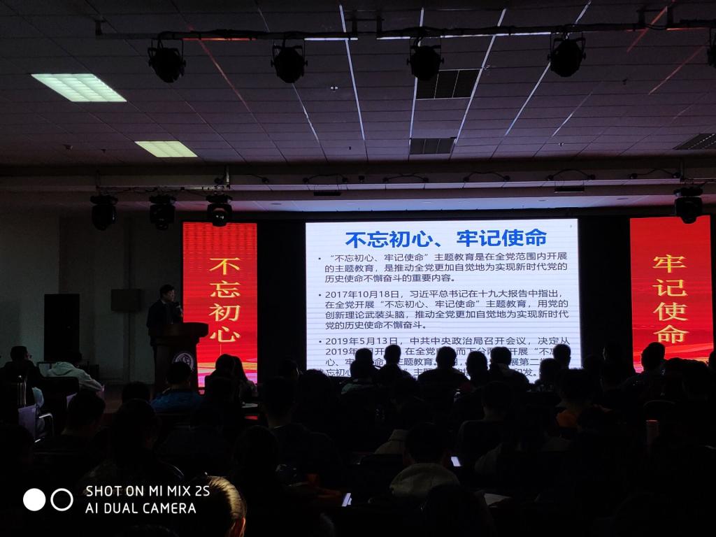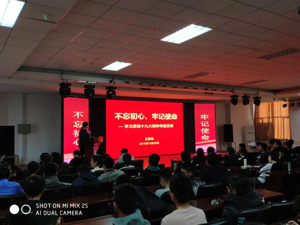2019年10月30日下午,材料学院院长王慧远教授为学院全体本科生党员和2019级材料类专业本科生做了一次题为“不忘初心,牢记使命”的主题教育专题党课。本次党课由学院党委副书记兼副院长李东生主持。