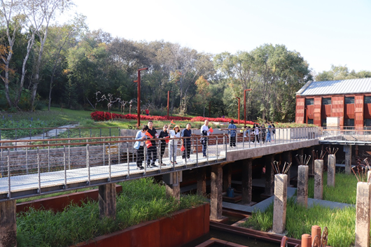 参与本次活动的30余名教职员工从水文化生态园亚泰大街入口出发,参观整个园区,历时两个余小时。生态园园区中的很多遗址都记录了长春市供水发展史的开端以及80多年来多次扩建保障城市供水的发展历史。这些遗址的遗迹保存的都比较完整,日伪时期的建筑风格独特,充满历史的厚重感。教职员工们参观风景的同时,了解长春水生态建设的历史,收获满满。最后,全体参与教职员工在正门口合影留念。