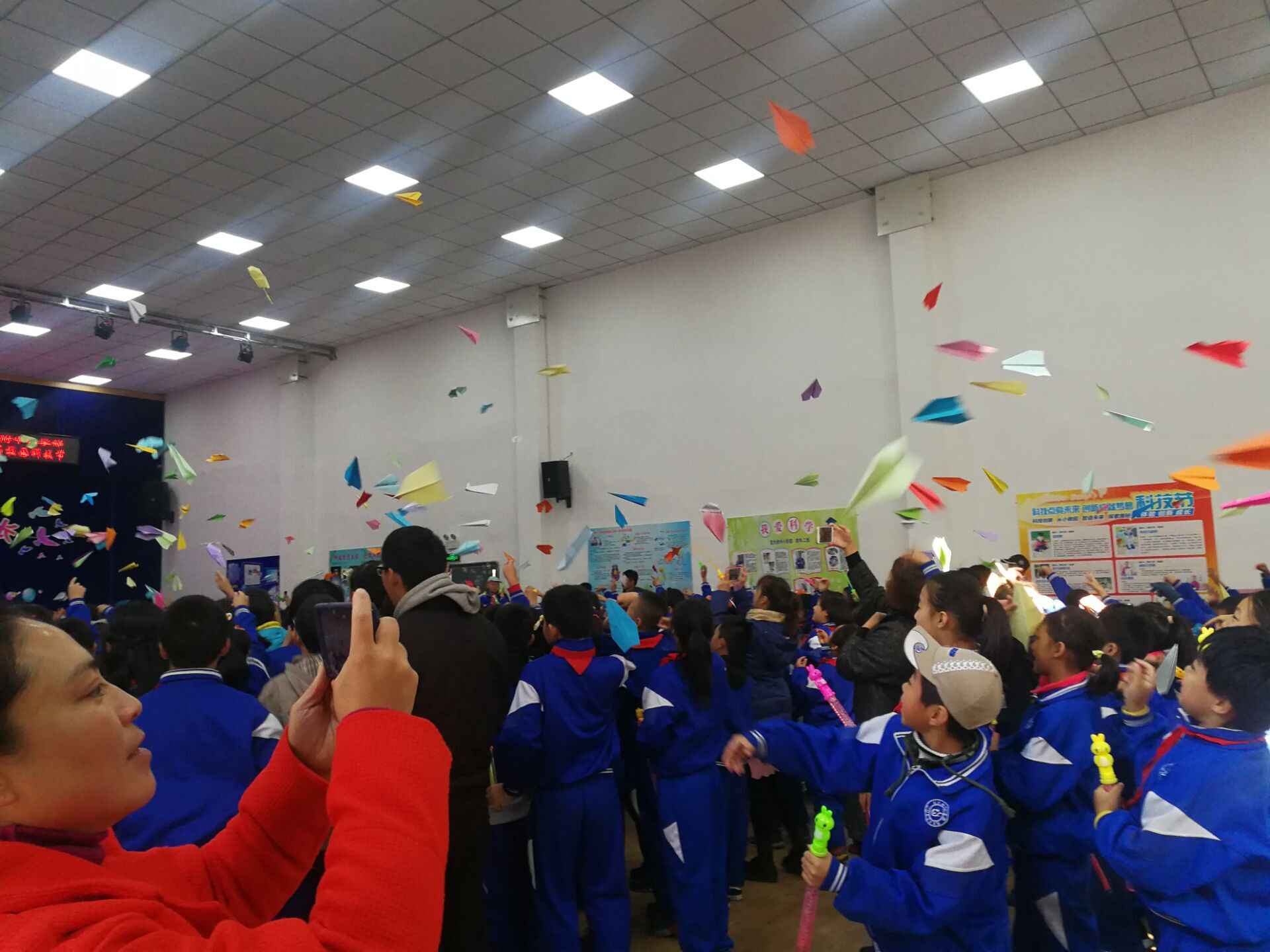 上午8:30活动正式开始,女同av 附属中学小学部刘校长上台致辞,他提到:创造型人才的培养需要从青少年开始,青少年时期是一个创造性思维和创造力发展的重要阶段,并祝愿全体同学都能成为创新型人才。致辞完毕,附小全体同学一齐放飞手中的纸飞机,吹起七彩泡泡,纸飞机在空中齐飞,壮观夺目,泡泡在人群中漂浮,绚丽美好,并寓意科学之峰将愈攀愈高,科技之光必炫彩夺目。随后,附小学生带来了航模展示、魔方比赛等精彩表演,令人感慨其课余生活的丰富精彩。场馆同时展出小学生的个人科技节作品:仿生机器人、简易报警器、空气电力四驱车等,无不展示着新一代青少年优秀的实践动手能力和卓越的创新意识,户外操场上,平衡车表演、伞降展示、舰模比赛、纸桥游戏等活动如火如荼地进行,在支教处志愿者协助下附小的同学们顺利完成了“大象鼻子”科学演示实验科学实验的趣味性、创新性在本次实验中体现得淋漓尽致。上午11:00,本次科技节在一片欢声笑语中圆满落幕。