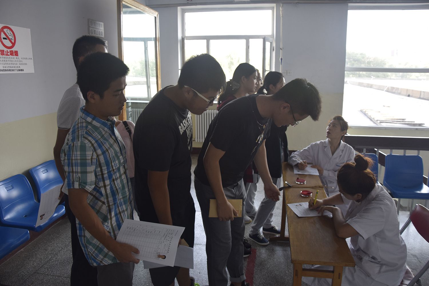 28日、29日上午8:00,全体新生于宿舍公寓楼下集合完毕,随后由辅导员助理及班主任助理带队前往校区医院接受体检。本次体检设有心压、心率、身高、体重、视力、听力、口腔、胸透等多个项目。在学校的合理安排下,在医院医护人员的认真检查、辛苦付出下,在同学们的积极配合下,体检工作得以迅速有序的展开。上午11:30 新生们顺利地完成了所有的体检项目。