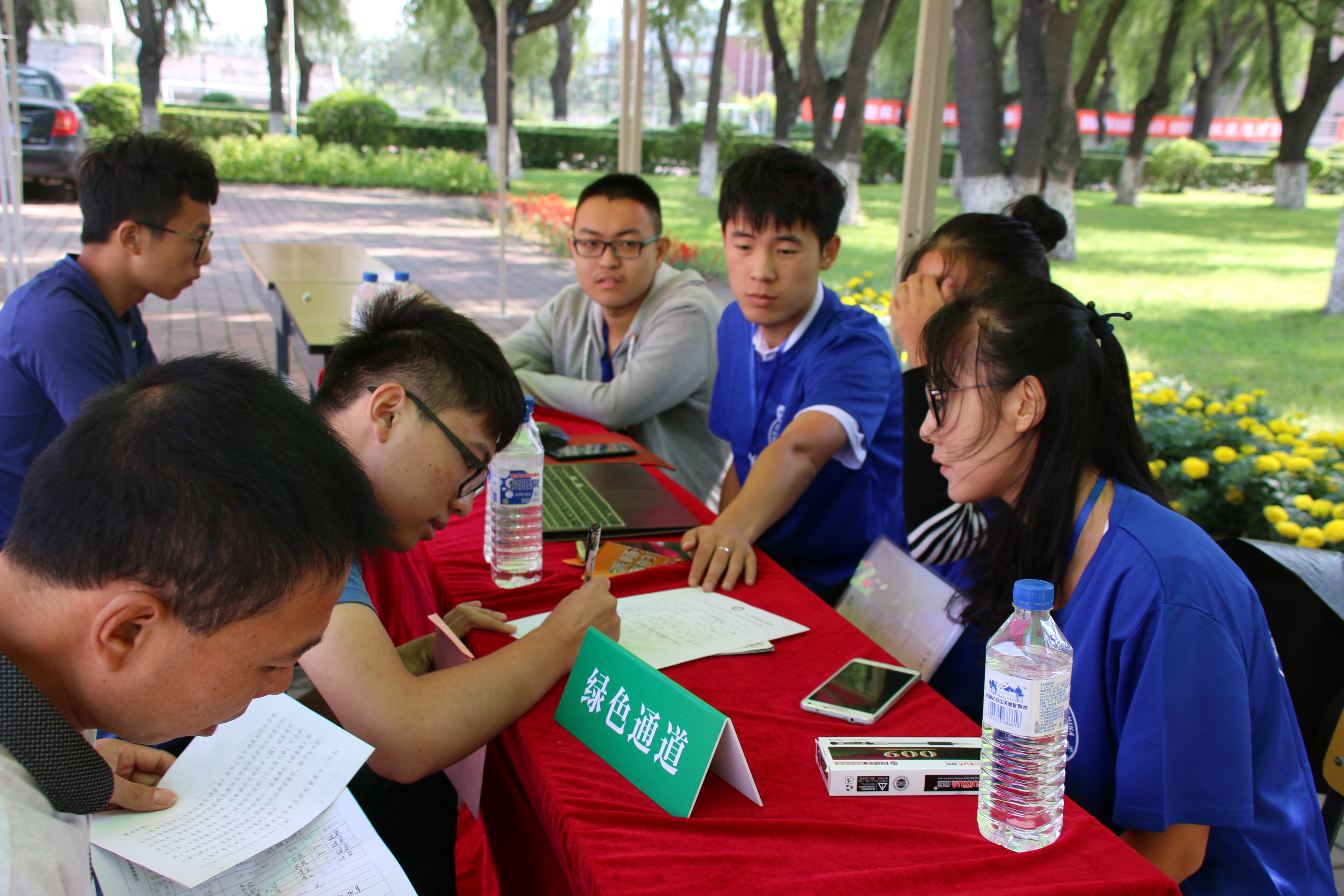 25日晨曦初照,学团委成员的身影出现在基础实验楼,他们有序地坐上大巴前往和平校区准备迎新。在到达场地后将材料科学与工程学院迎新现场摆放整齐,穿着统一服装的工作人员带领新生完成报道的所有流程并耐心为新生们解答问题,提供帮助。同时志愿者们也热心地帮助新生,为他们带领道路,搬运行李。迎新工作如火如荼的开展着。