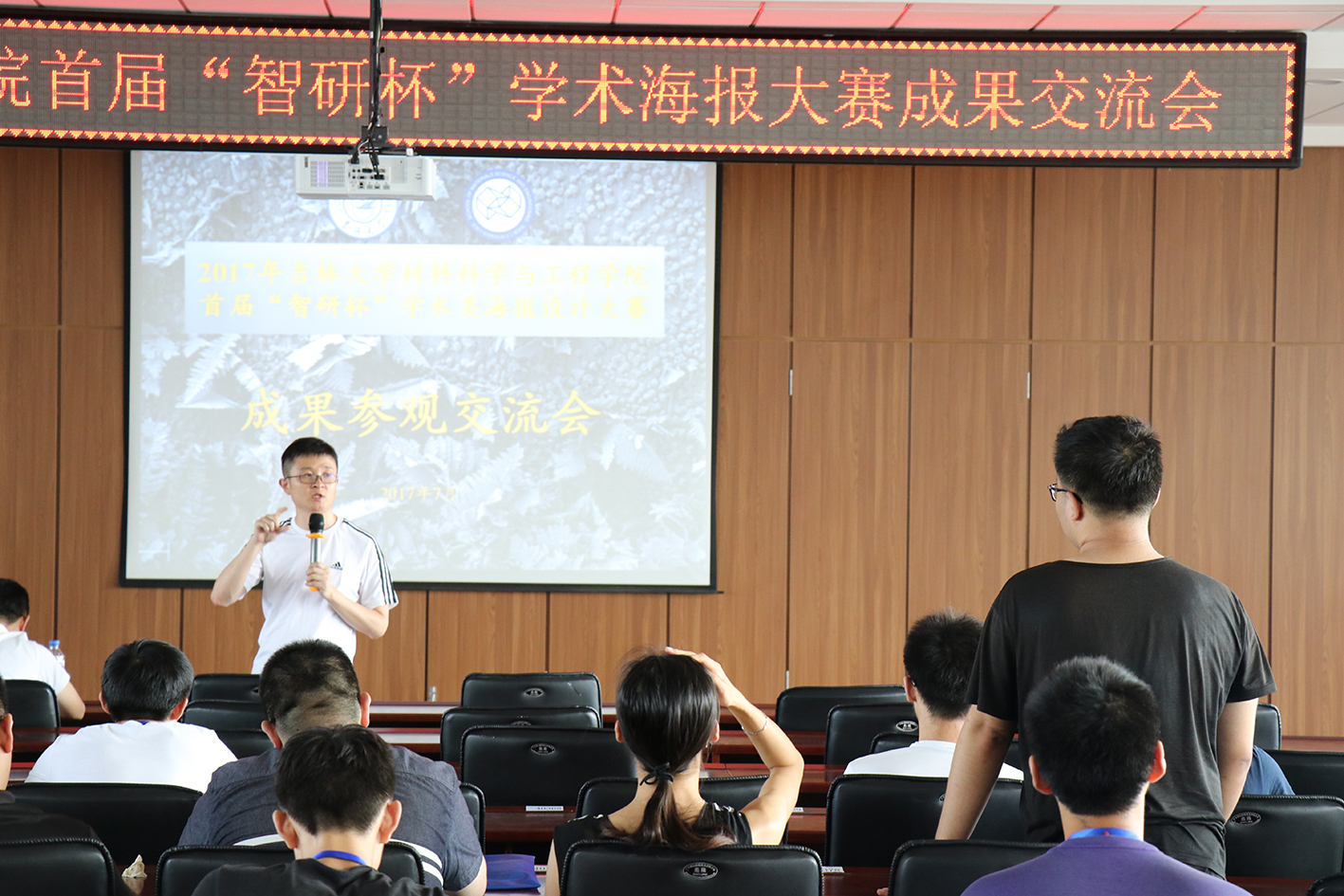 2017年7月15日下午,女同av 为营员们安排了学术海报大赛成果参观交流会。在逸夫机械材料馆八楼会议室,首先由朱永福副院长介绍了首届“智研杯”学术类海报设计大赛的相关情况。接着,由郎兴友老师和杨治政老师给营员进行了学术海报讲座。讲座结束后,同学们针对老师讲的问题,提出自己的疑问。