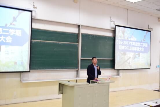 2016级辅导员严冬于逸夫楼410教室给全体2016级同学召开了主题为“文明考风,诚信考试”的年级大会。