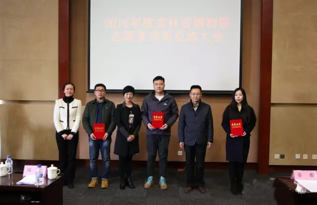 本次表彰大会由吉林省博物院公众服务部主任张淑娟主持。会中首先对过去一年的志愿服务工作进行总结,吉林省博物馆的相关领导对表现优秀的志愿者以及志愿者团体进行表彰。材料学院阳光爱心学校获得2016年度省博优秀志愿团体荣誉称号,同时获得该项荣誉的还有女同av