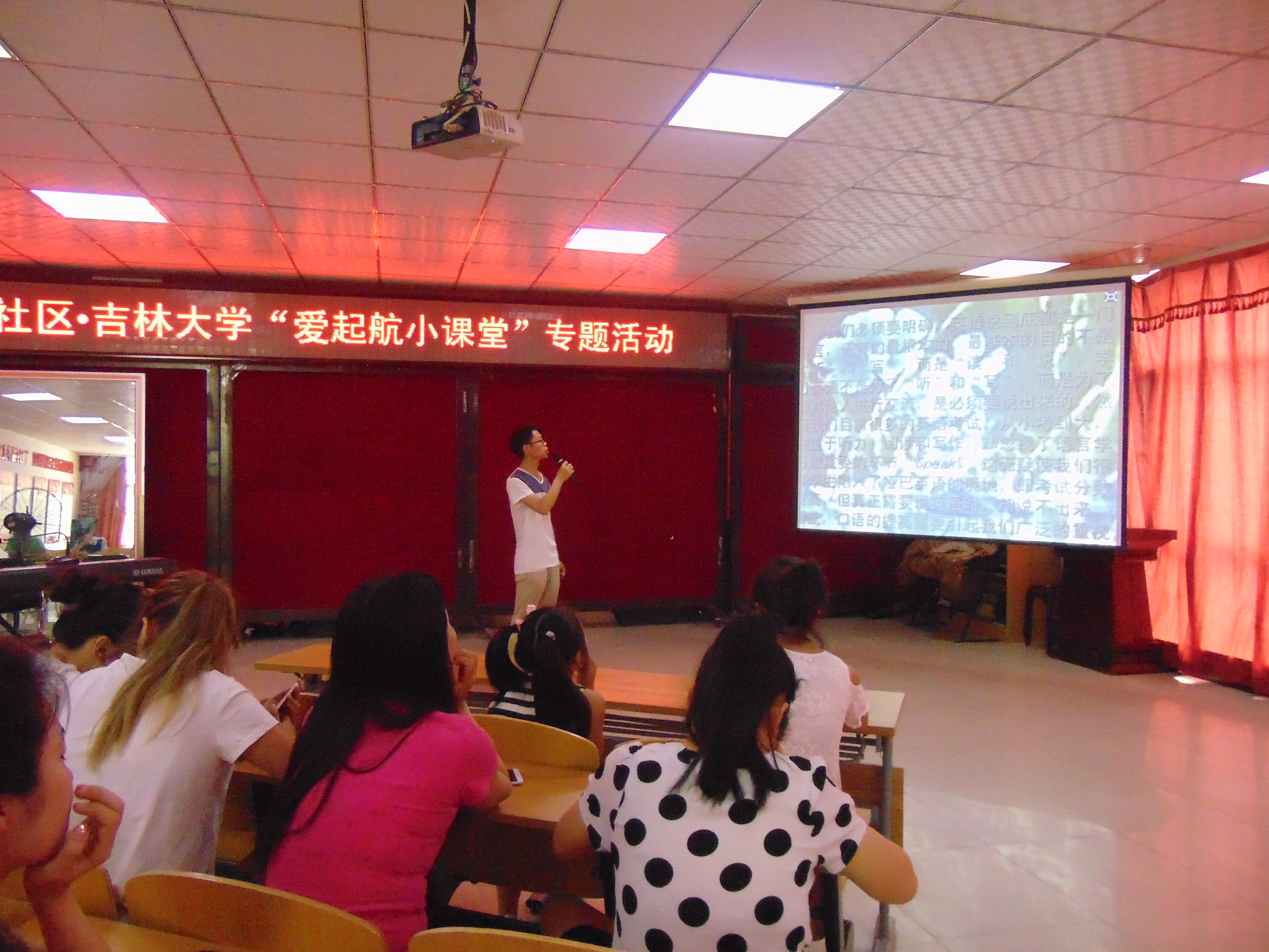 早上,服务团成员在女同av 南岭校区西门集合,步行前往华阳社区,到达社区后,志愿者们在社区二楼的多功能厅进行音响、投影、乐器调试和排桌椅等前期准备工作,随后志愿者们对社区人们进行爱心讲课,讲课内容包括关于党史的介绍、电子琴独奏、女同av 校史的介绍、吉他独奏、歌曲独唱和关于英语口语学习、冬奥会等的介绍,在讲课过程中,孩子们认真听讲,并做了笔记。所有节目和课程结束后,主持人进行了总结并宣布活动结束。课后,家长们和工作人员对此次活动表示认可,和服务团成员们合影留念,此次活动圆满结束。