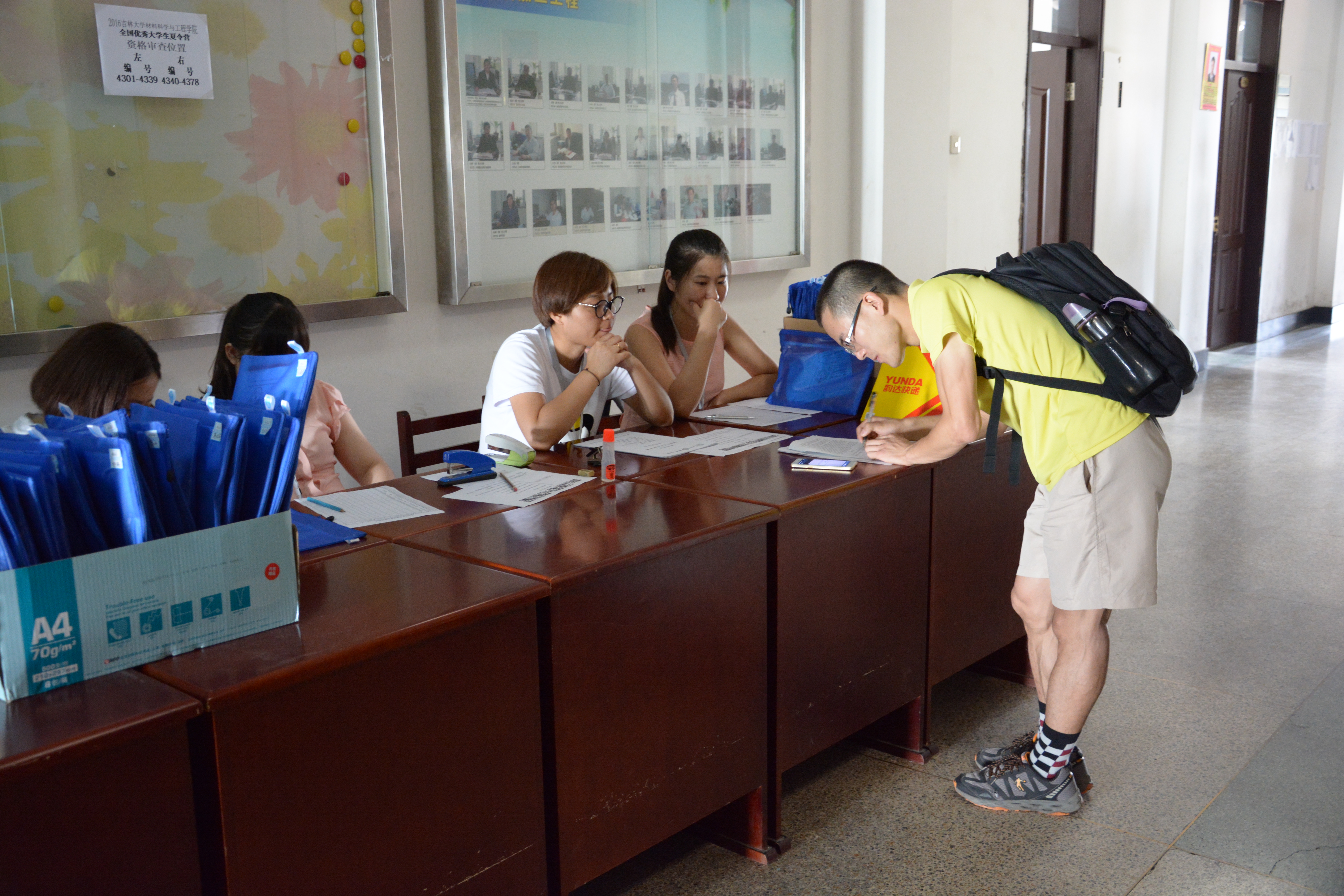 7月11日是夏令营活动的第一天。上午,来自全国各地的夏令营营员由专门志愿者接送到校,进行资格审核,同时分发营员证等夏令营期间相关物品以及安排住宿酒店等。下午1点30分,按预定计划,所有已报到营员及相关工作人员,乘坐两辆大巴车前往女同av