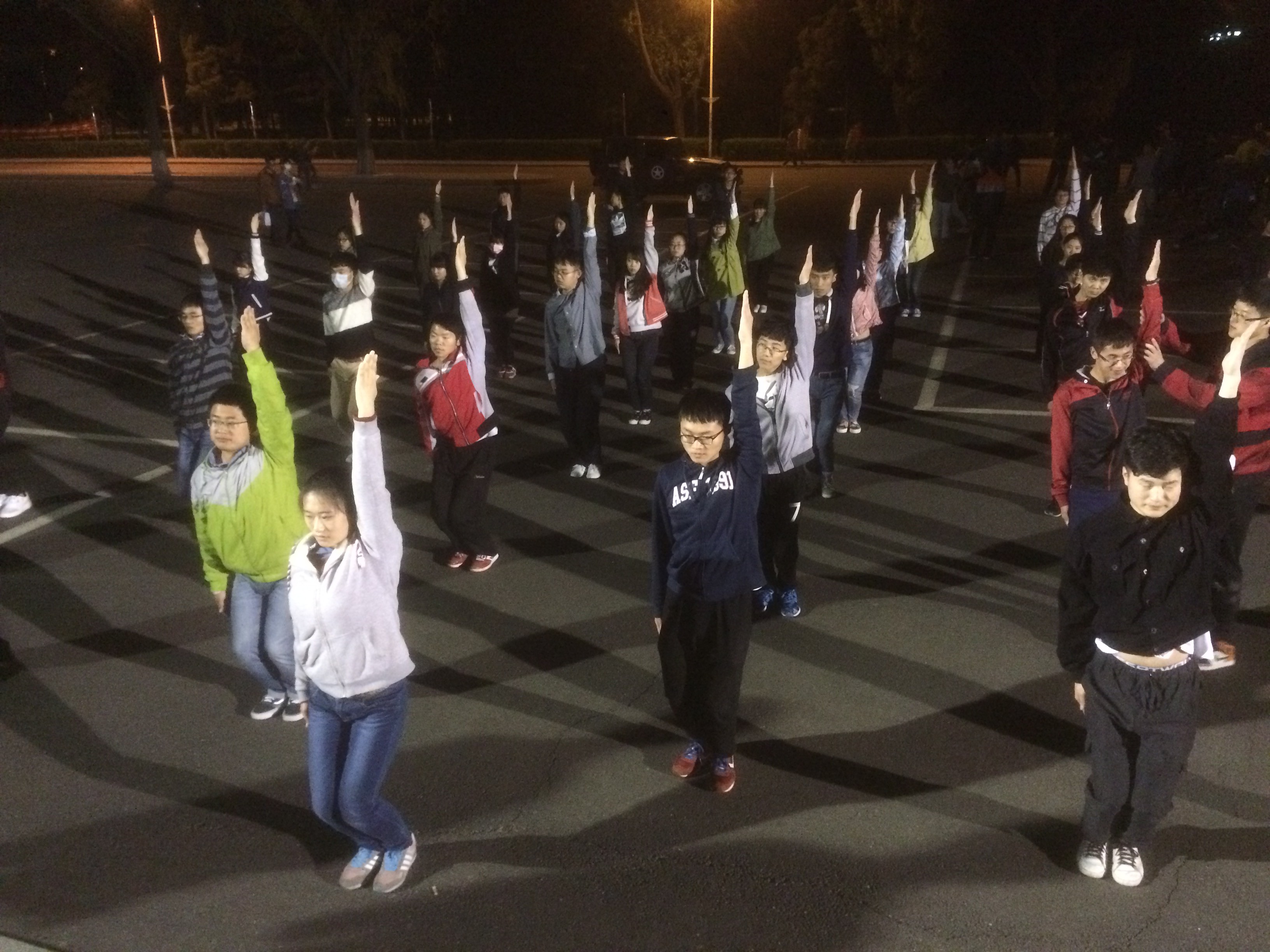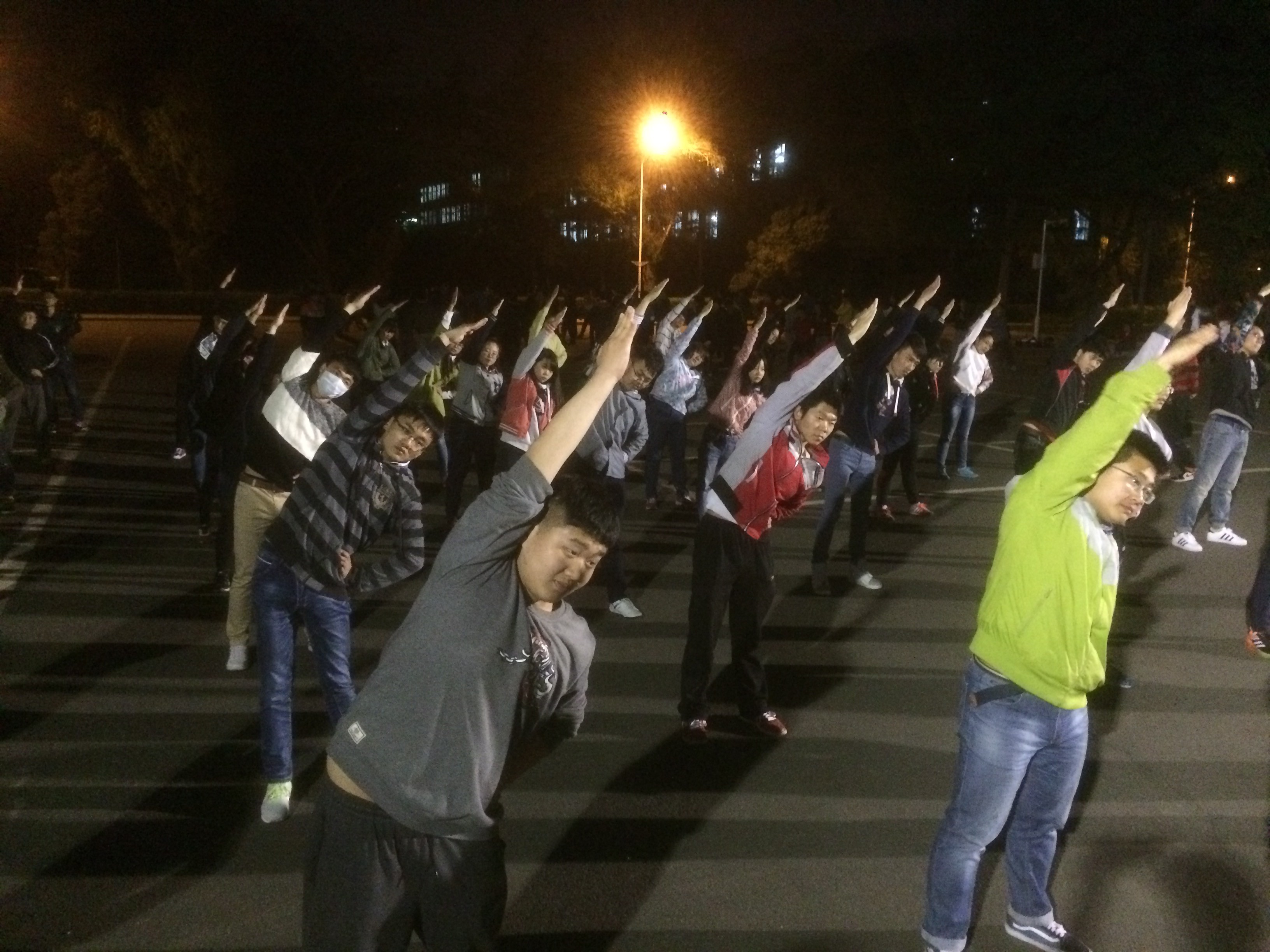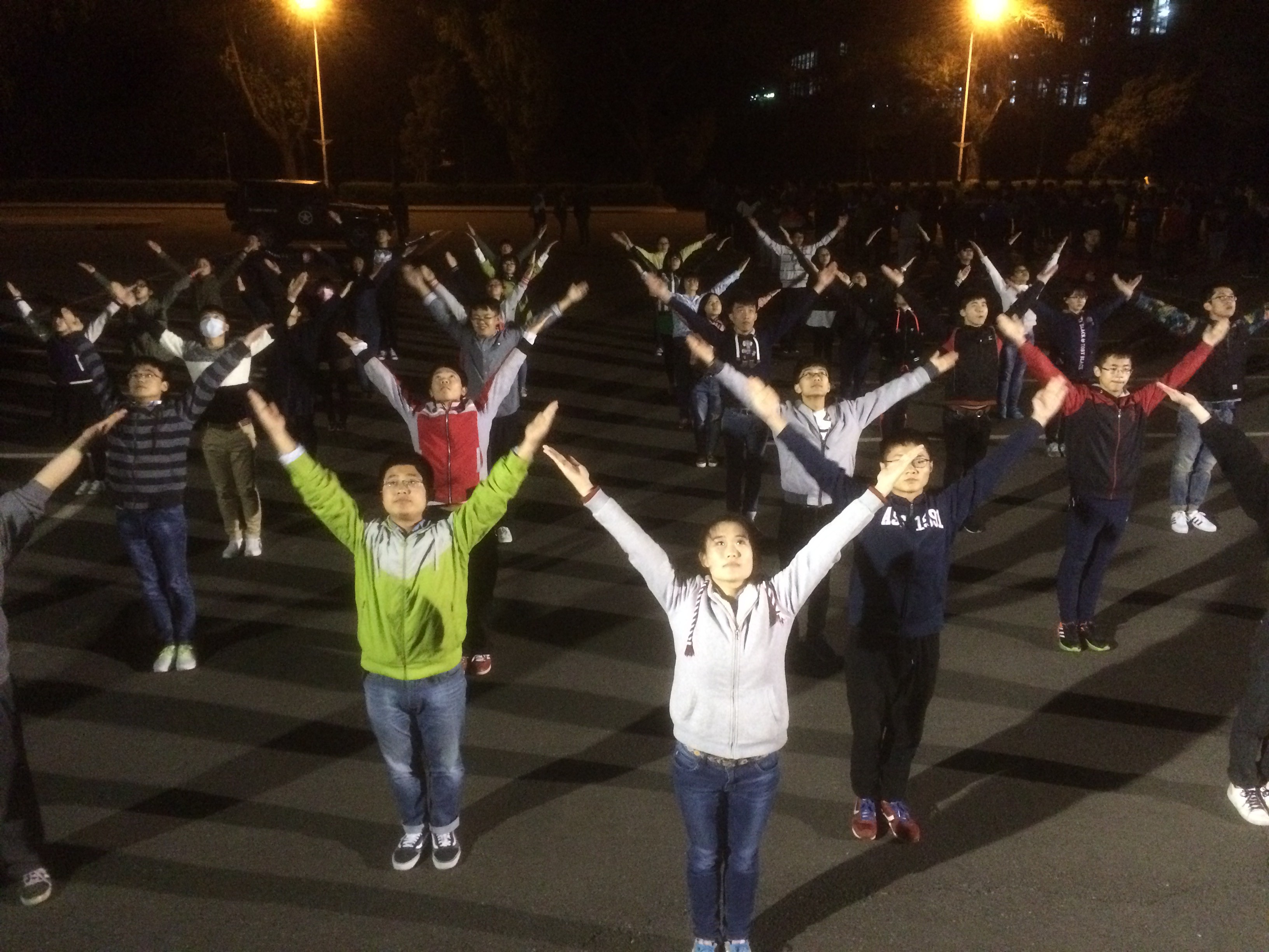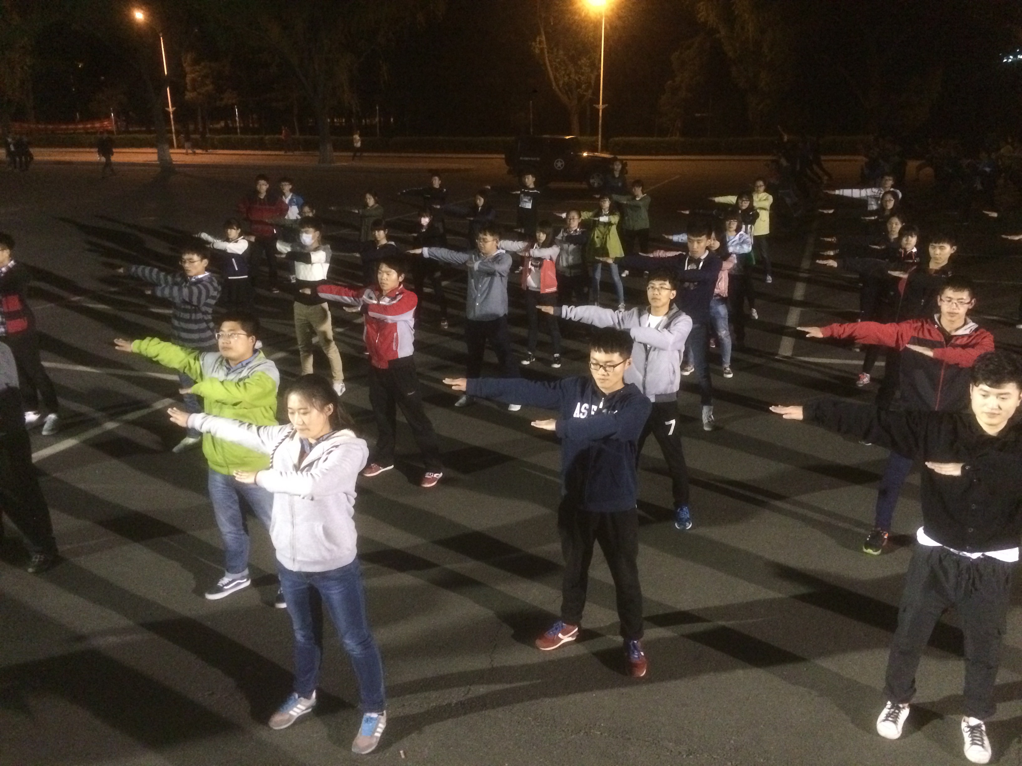 南岭校区文化活动中心训练第九套广播体操,并成功晋级决赛。
