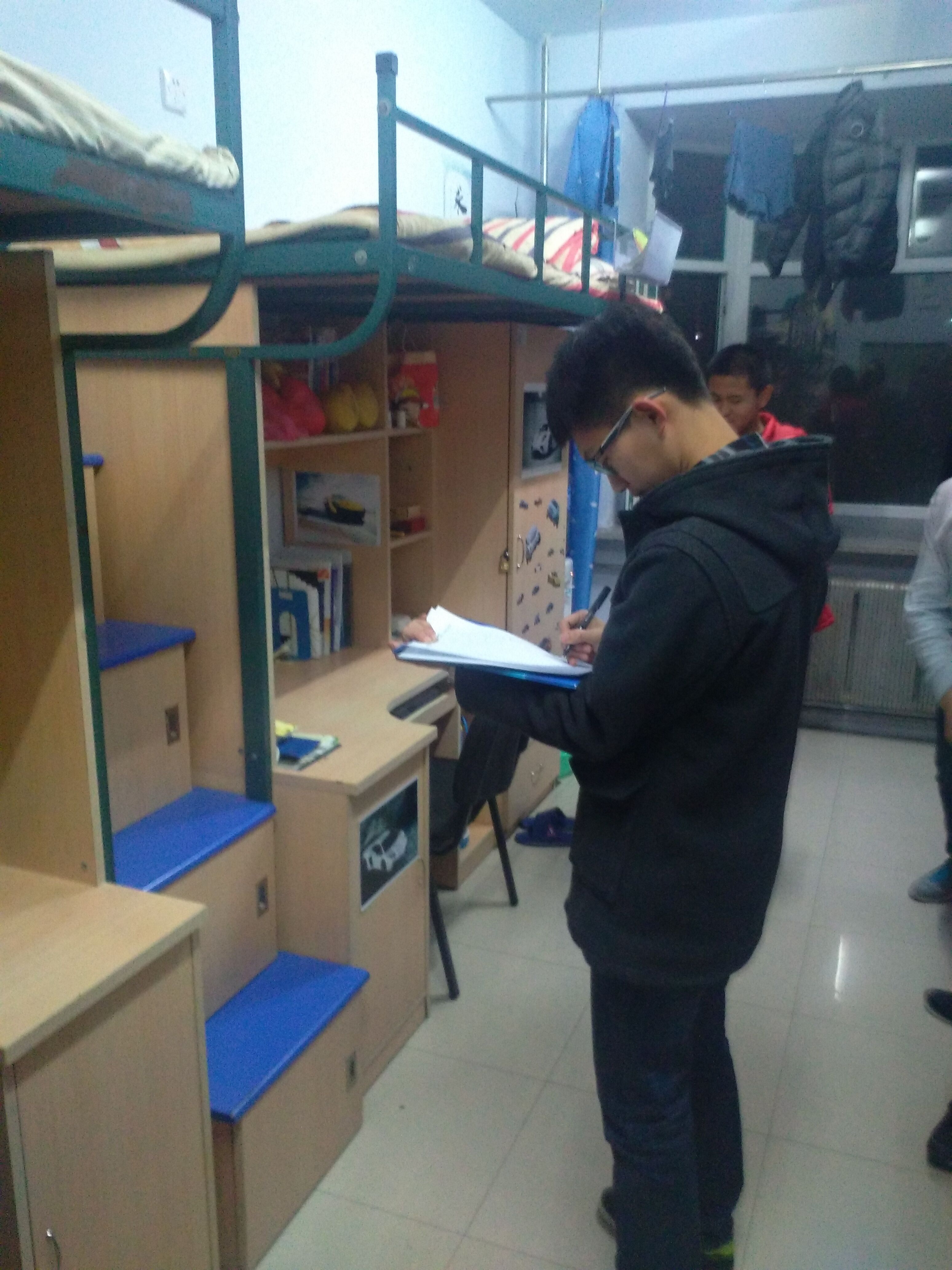 学生会生活部对14,15级材料学院学生寝室进行例行检查。本次检查由生活部全体部员参与,并且对检查结果进行评分分与记录,作为优秀寝室评选的标准,建立适当良性竞争,督促大家维护整洁的寝室环境与良性的文化氛围。