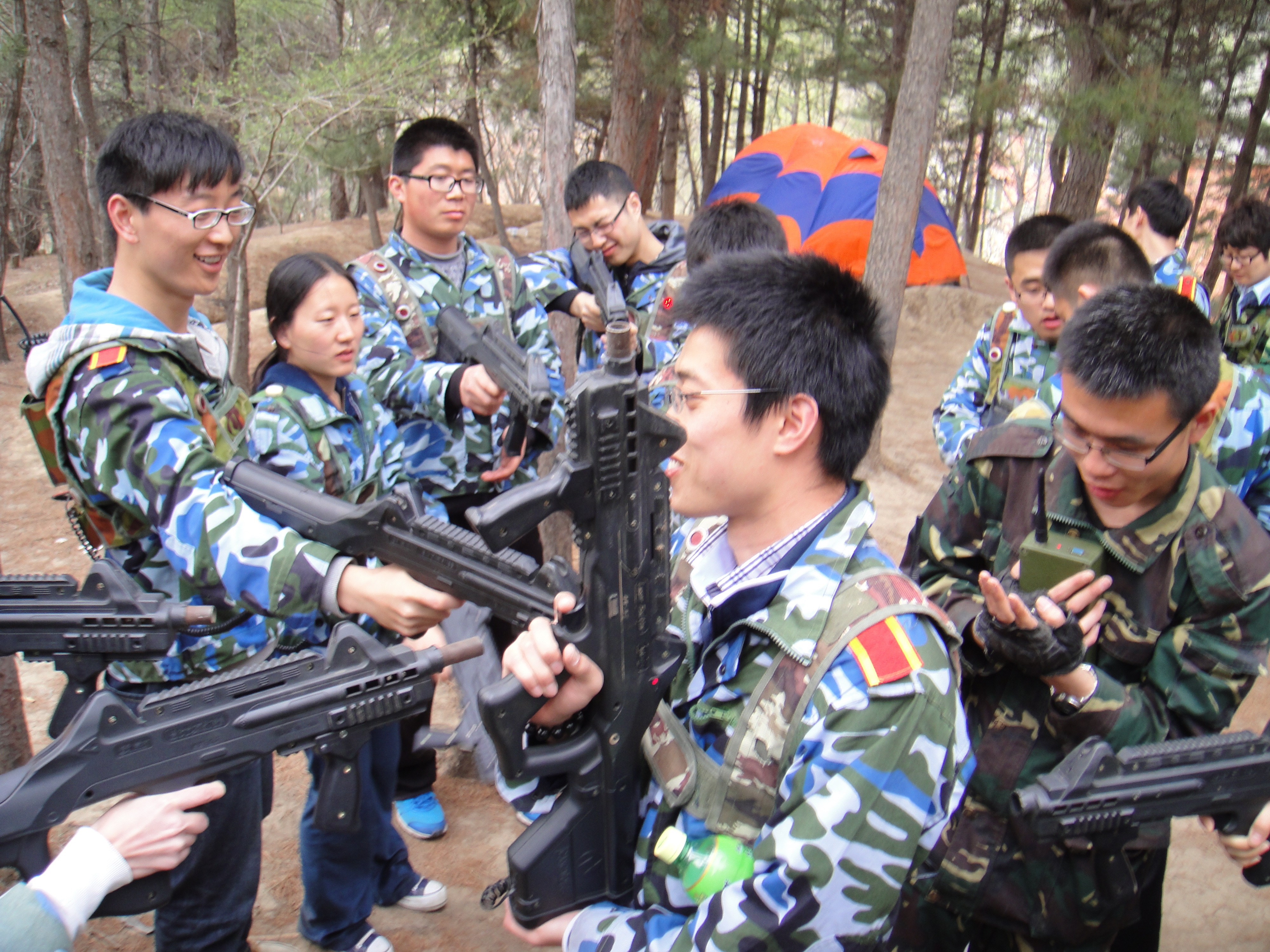 活动伊始,教官带领同学们进入了军队的训练环境,为同学们详细讲解了野战训练的活动细则;活动期间,教官所设计的攻防战、对垒战、间谍战、营救人质战等多种游戏模式,使得同学们的热情持续高涨,让同学们在开心快乐的气氛中渐渐领悟到了团结的重要性,潜移默化地拉近了彼此的距离,让集体更加紧密;在活动结束前,教官又带领同学们进行了团队素质拓展训练,口传筷子的游戏以及后续的惩罚措施,又把这次活动带上了一个高潮。