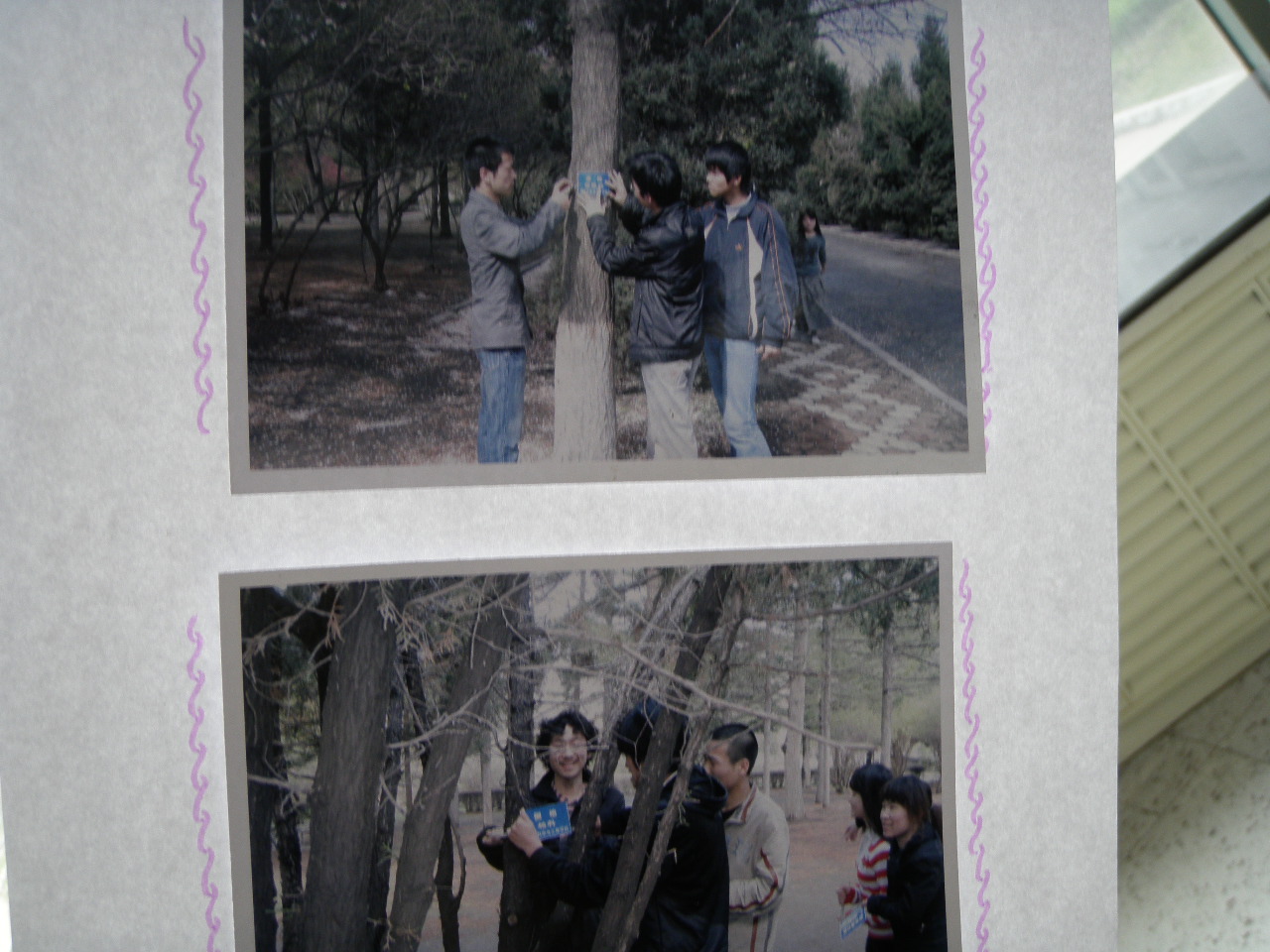 08级三班团支部在南岭校区举行了主题为“为大树做名片,遏止浪费、涂鸦现象”的系列环保团日活动。