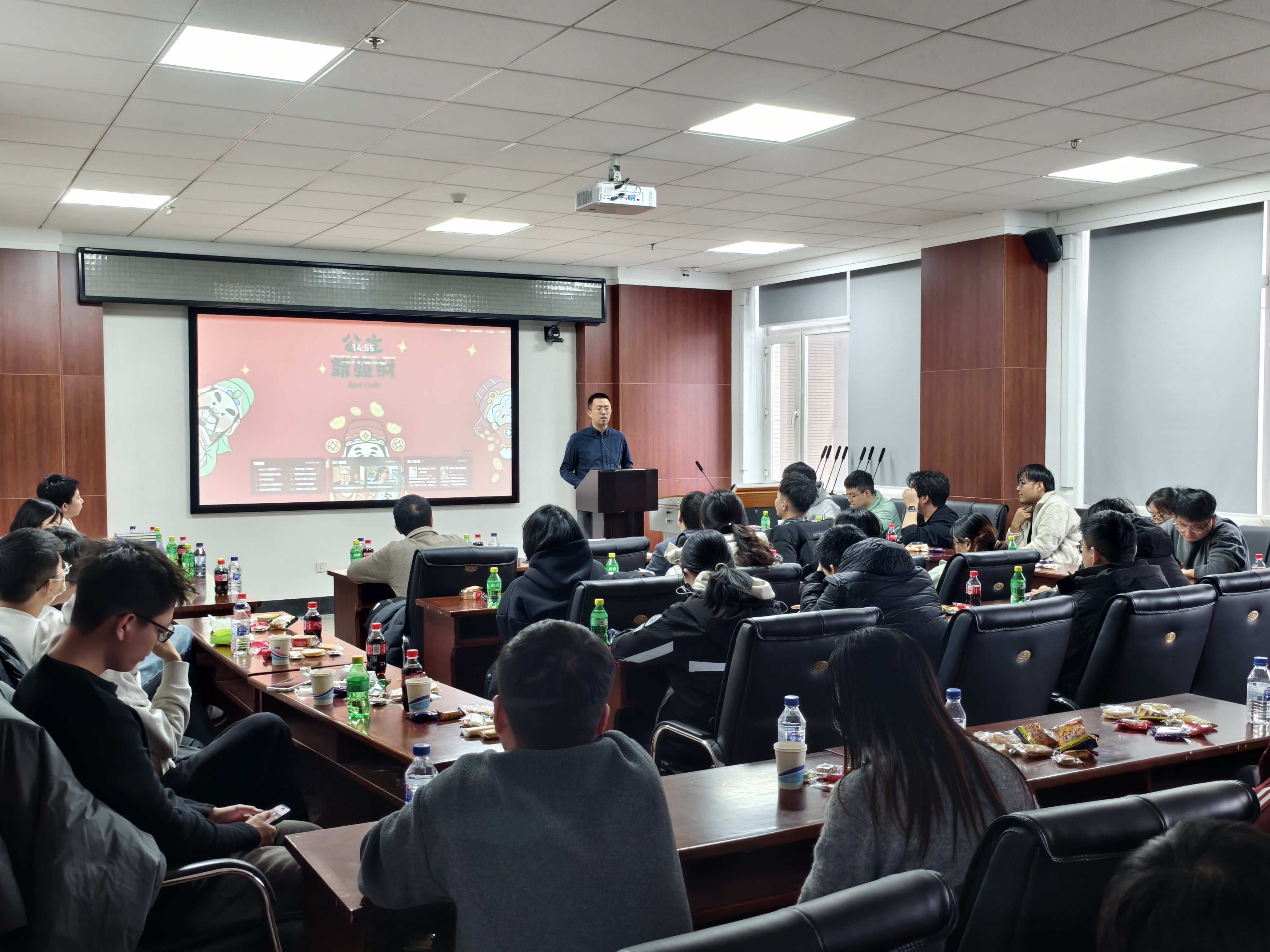杨哲老师(研究生院教务科科长)作为学院研究生教学管理板块的核心负责人,核心职责聚焦学术学位研究生培养体系搭建与全流程教务工作统筹。他牵头组织各学科学术学位研究生培养方案的制定与修订,同时负责统筹推进研究生课程建设项目,研究生培养经费统筹管理等关键保障工作。杨哲老师围绕自身分管的教务管理与培养保障职责,和现场的研究生同学们展开了细致深入的交流互动,为大家解答了培养方案解读、课程选课规划、成绩管理细则等方面的疑问,既让同学们收获了实用的教务办理指引,也加深了大家对学院研究生培养管理制度的理解,对同学们顺利开展学业、规划学习进程起到了重要的指导作用。