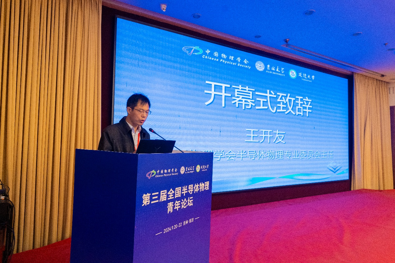 的支持,并强调青年学者在推动半导体物理发展中的重要性。他在致辞中期望论坛能够突出特色,促进青年学者之间的交流合作,希望大家在会议中收获灵感和友谊。