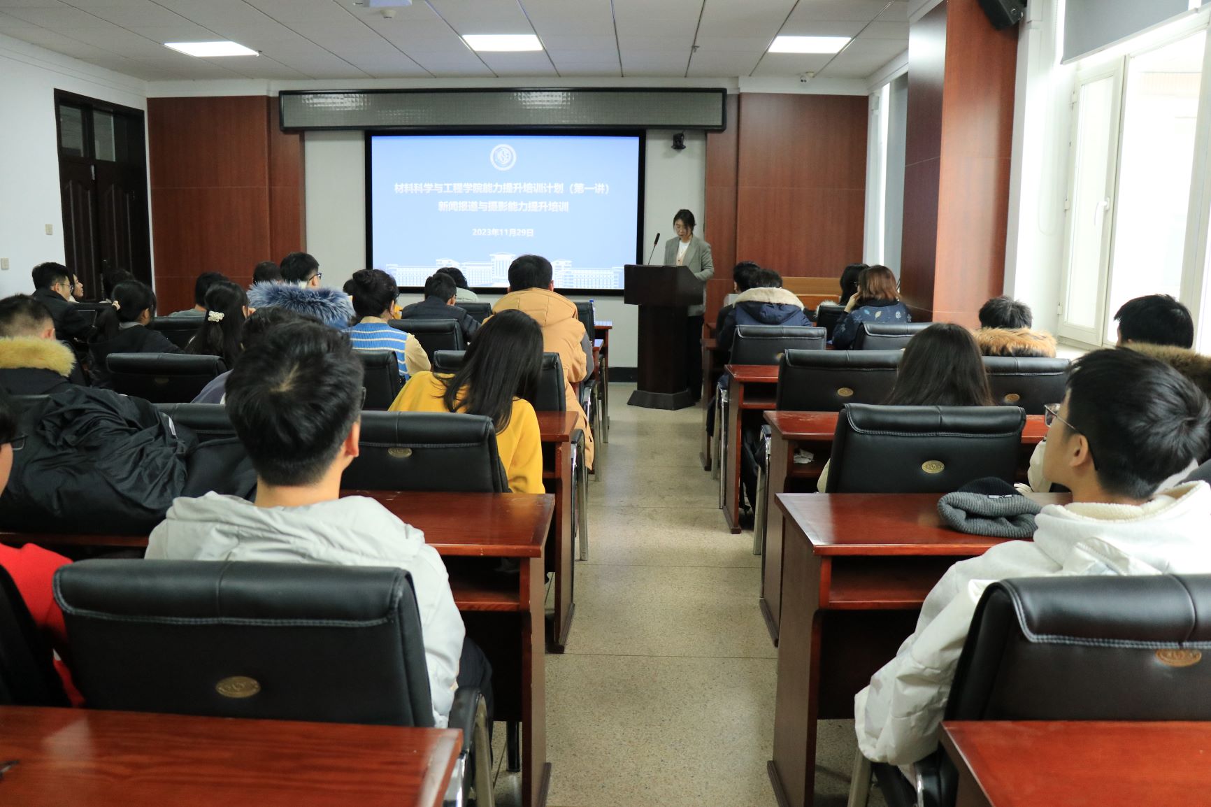 邀请学校党委宣传部理论科科长霍睿,在材料馆209报告厅开展新闻报道与摄影能力提升培训。会议由学院行政副院长辛颖主持。