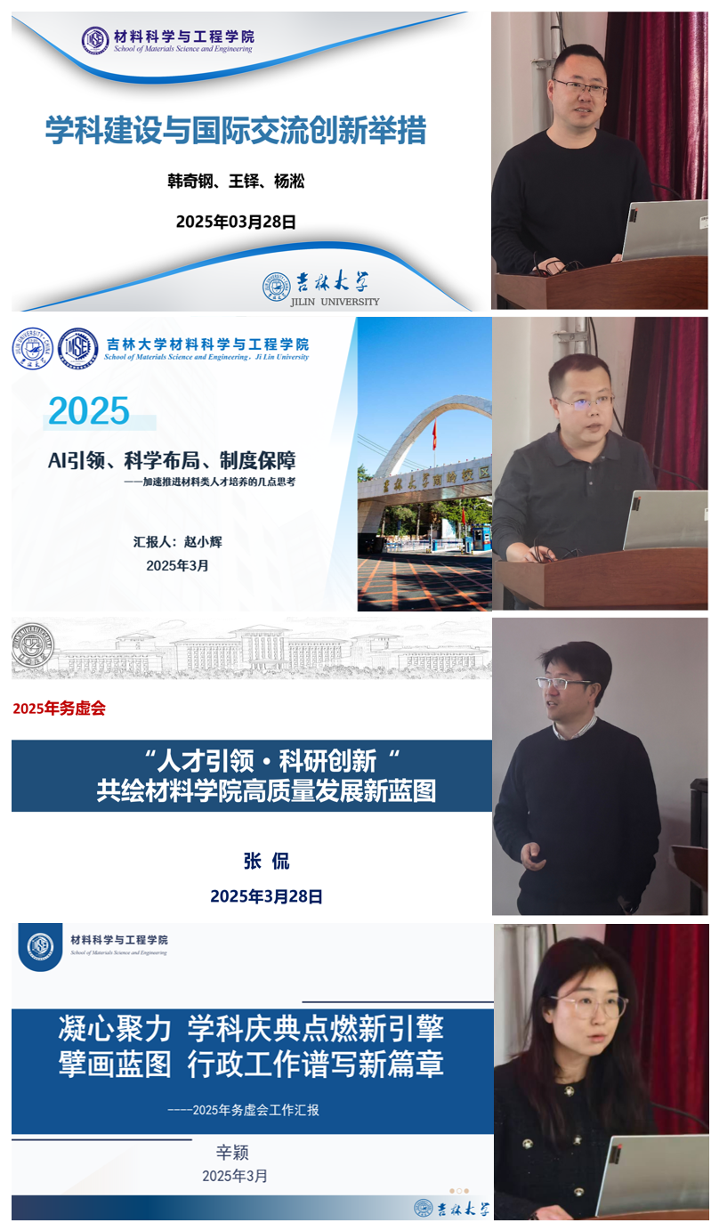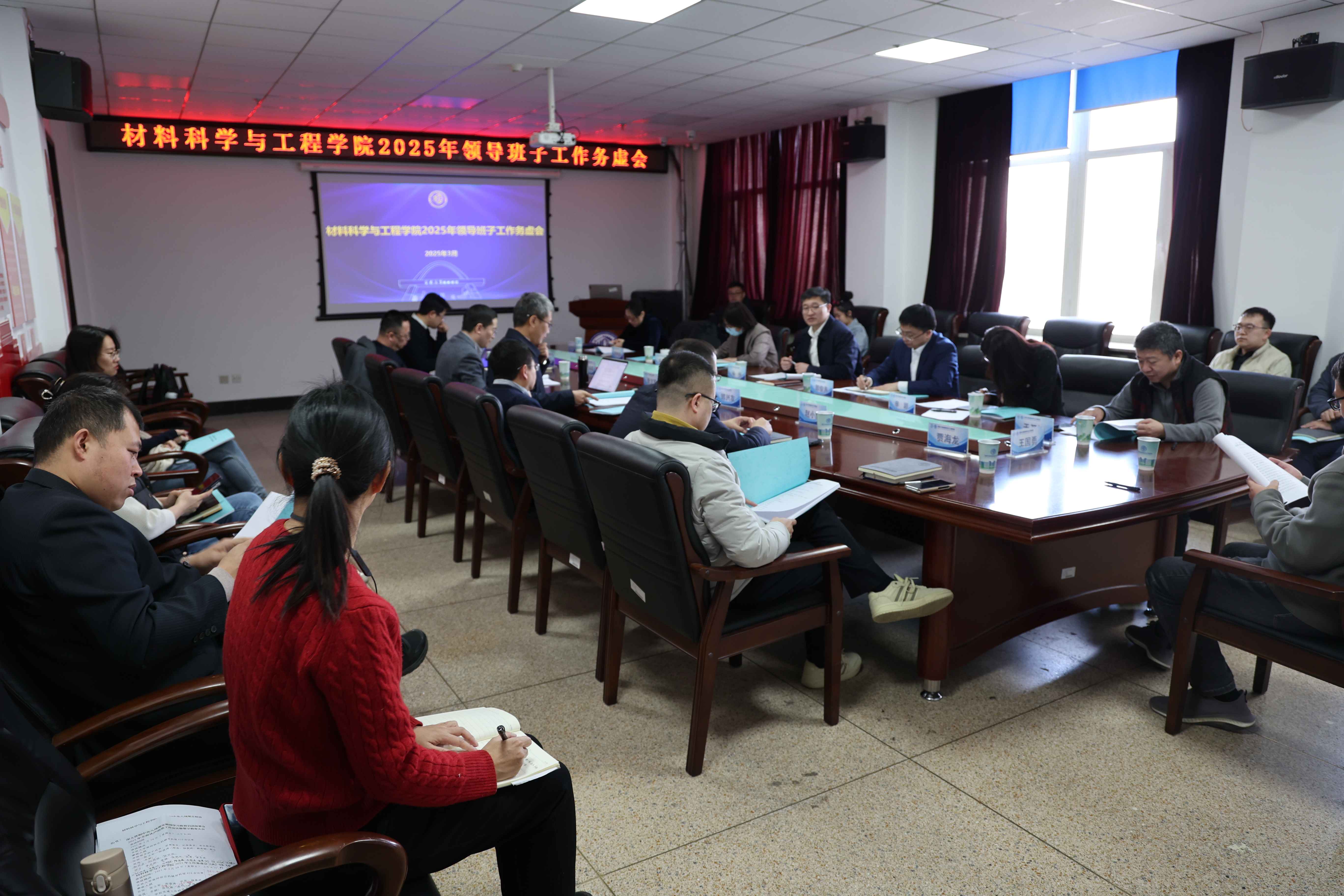 2025年领导班子工作务虚会在材料馆410会议室召开。会议聚焦“新征程、新班子、新担当、新作为,统一思想,凝聚智慧,推动学校学院学科高质量发展”主题,深入探讨制约学院事业发展的关键问题,积极谋划2025年的重点工作。会议由学院党委书记孙恒主持。