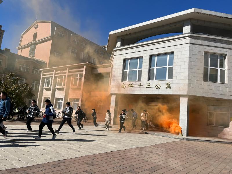 于2023年10月16日组织学院2023级本科生代表在南岭校区十三公寓参加南岭校区学生公寓消防安全疏散逃生灭火演练,学院2021级、2023级材料类专业辅导员严冬老师参加了本次活动。