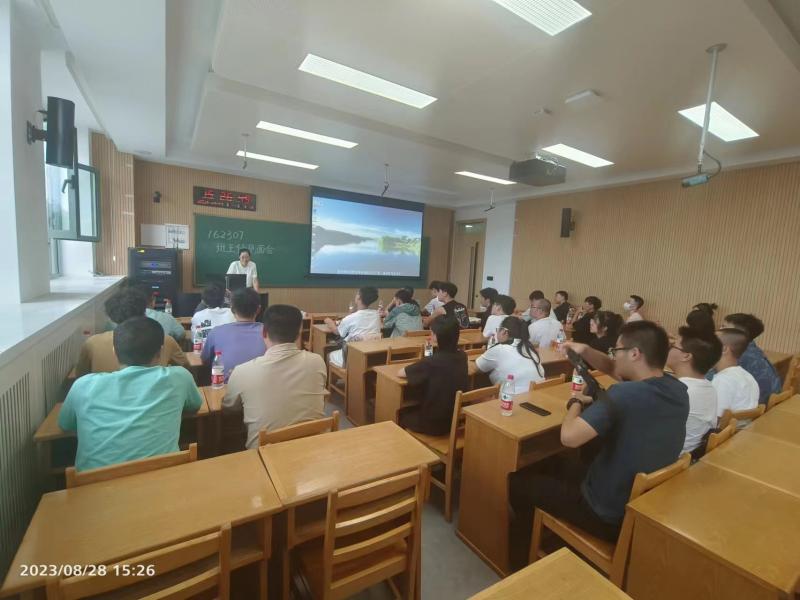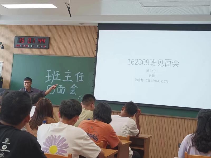 162306班,班主任郑祺峰老师、赵勇老师详细的介绍了学校、学院发展史与基本情况,重点围绕专业发展、大学生活等方面与新生同学们进行了全面的交流。