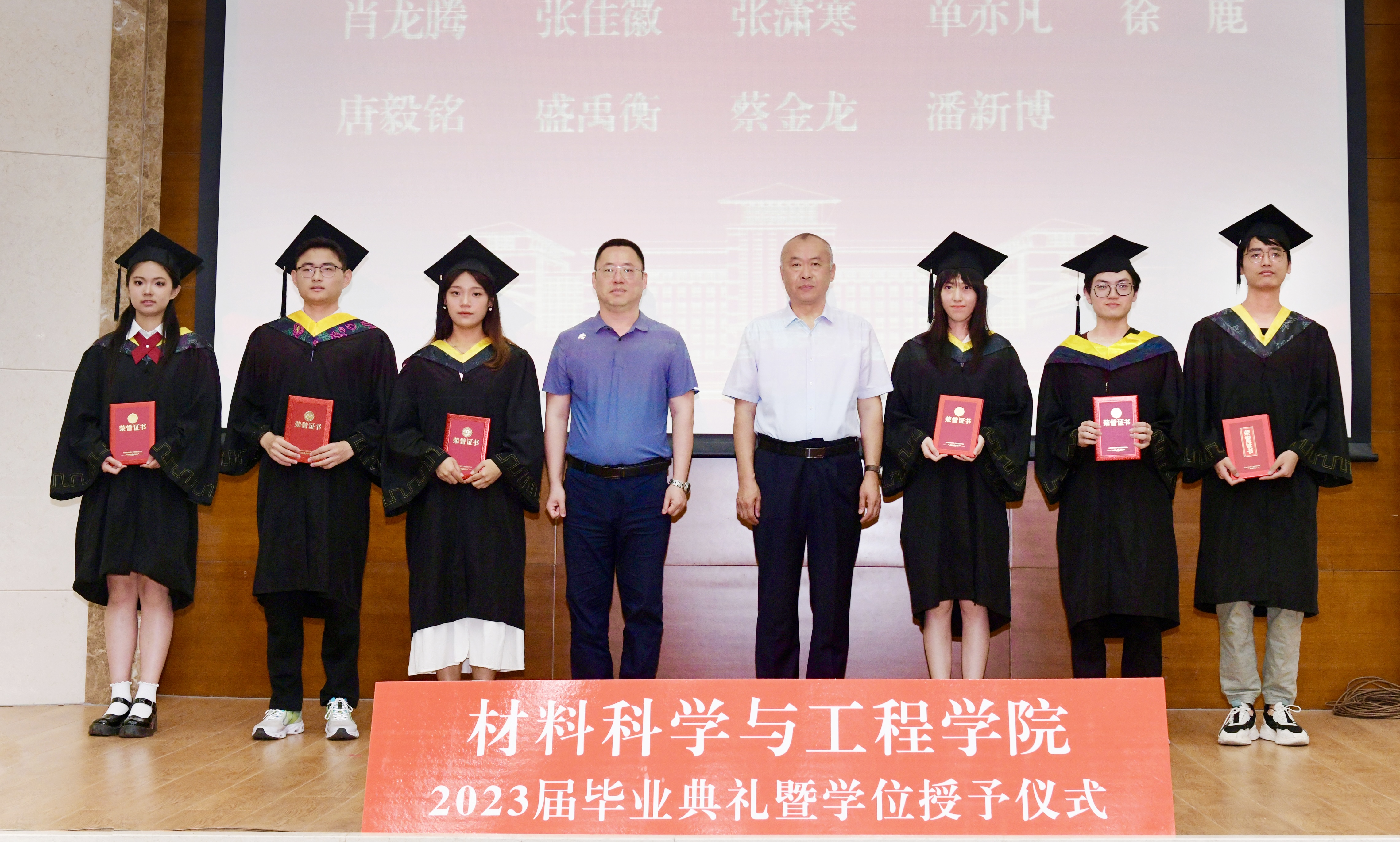 主礼教授张立军老师、王文权老师、崔小强老师、韩奇钢老师为学院2023届毕业生颁发证书、授予学位,并合影留念。