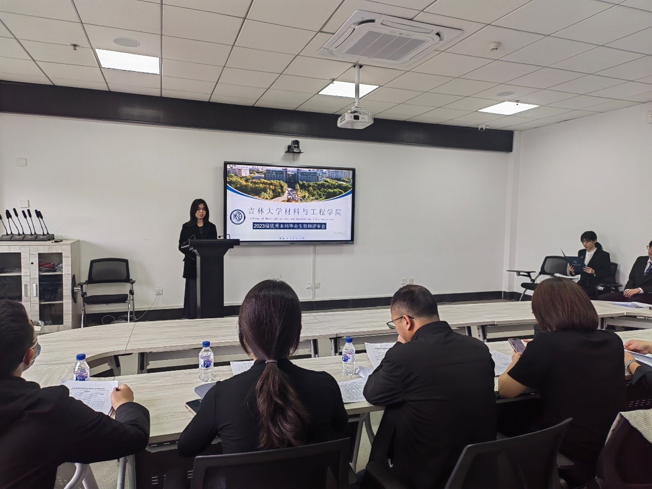 2023届本科优秀毕业生答辩评审会。学院党委副书记兼副院长华蕊、材料科学系王海涛老师、无机非金属材料工程专业苗世顶老师、金属材料工程专业王智力老师、材料加工工程系赵小辉老师、本科生辅导员严冬、王晗、刘艳丰、张晗禹出席本次评审答辩会并担任评委。