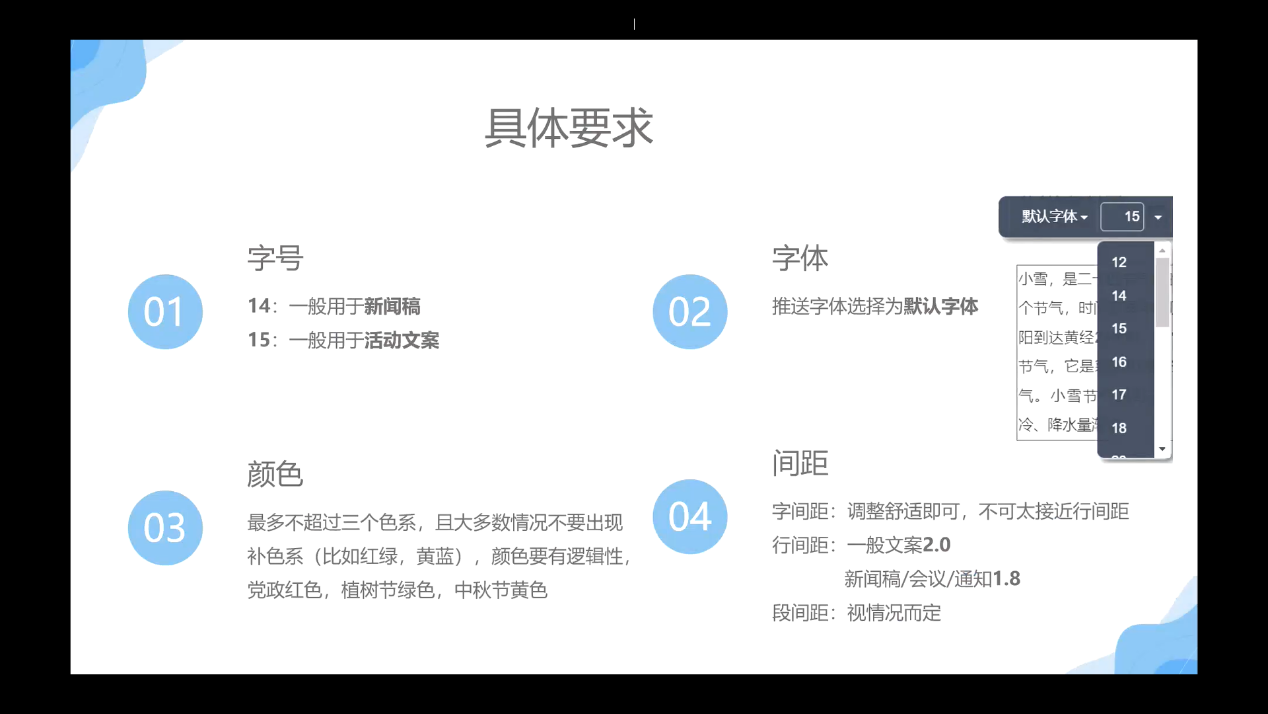 会议伊始,理事长陈诺宣讲了本次培训会的主要流程。随后,新媒体中心各部门的工作人员依次从推送排版、新闻稿撰写、摄影技巧、PsPr软件应用、海报及封面制作五大方面详细展开讲解,会议期间全体培训人员耐心讲解,对与会人员提出的问题,通过具体软件操作演示和实例分析进行回答,尽显一派和谐的学习景象。