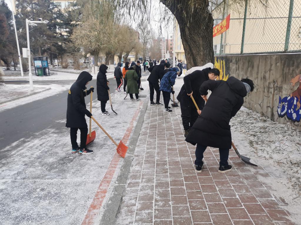 此次清雪除冰工作,不仅使校内师生的出行更加便利、创造良好校园环境,同时增强了同学间的团队协作能力,同学们在欢声笑语中结束了本次劳动。