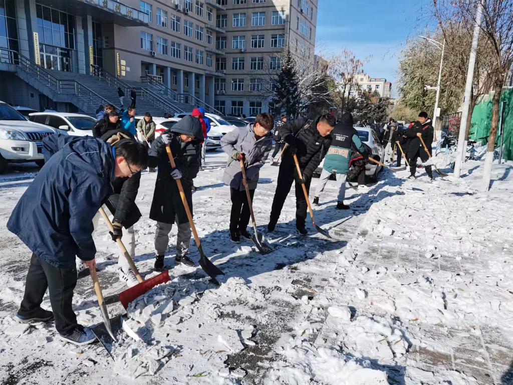 11月23日中午,根据本次降雪的实际特点,雪量不大、降雪时间短,学院抓住气温回暖的有利时机进行扫雪除冰劳动,在本次劳动中同学们快速响应,充分发扬劳动精神,同学们比学赶帮超,投入到火热的清雪劳动中,认真按标准完成工作任务。
