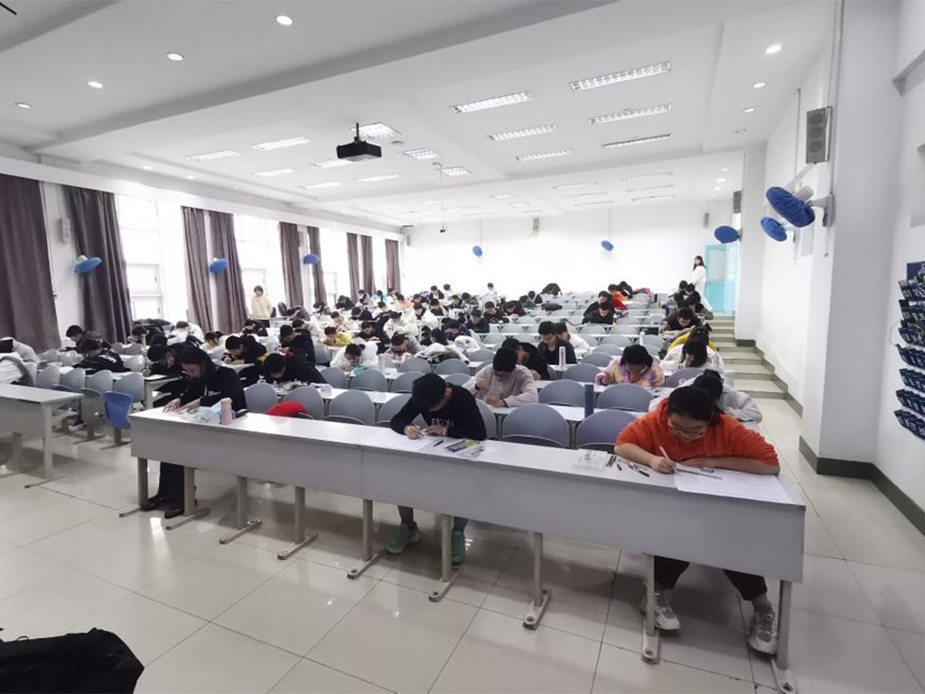 本次期中考试考核学科为工程制图与英语。本次工图考试注重考核考生对制图、正投影、立体投影的基础知识和技能的掌握和运用能力;英语考试试题与英语四级考试试题相仿,能在检验考生的英语听力水平、阅读理解能力与基础写作能力的同时提升考生对四级考试的熟练度。在考试开始前,考生们陆续进入考场,在院学生会和信望爱志愿者协会成员的组织下妥善放置书物并对号入座。待考试伊始,考场安静井然。在工程制图考试期间,考生们认真执尺绘图;在英语考试期间,也尽己所能地写出自己最好的答卷。