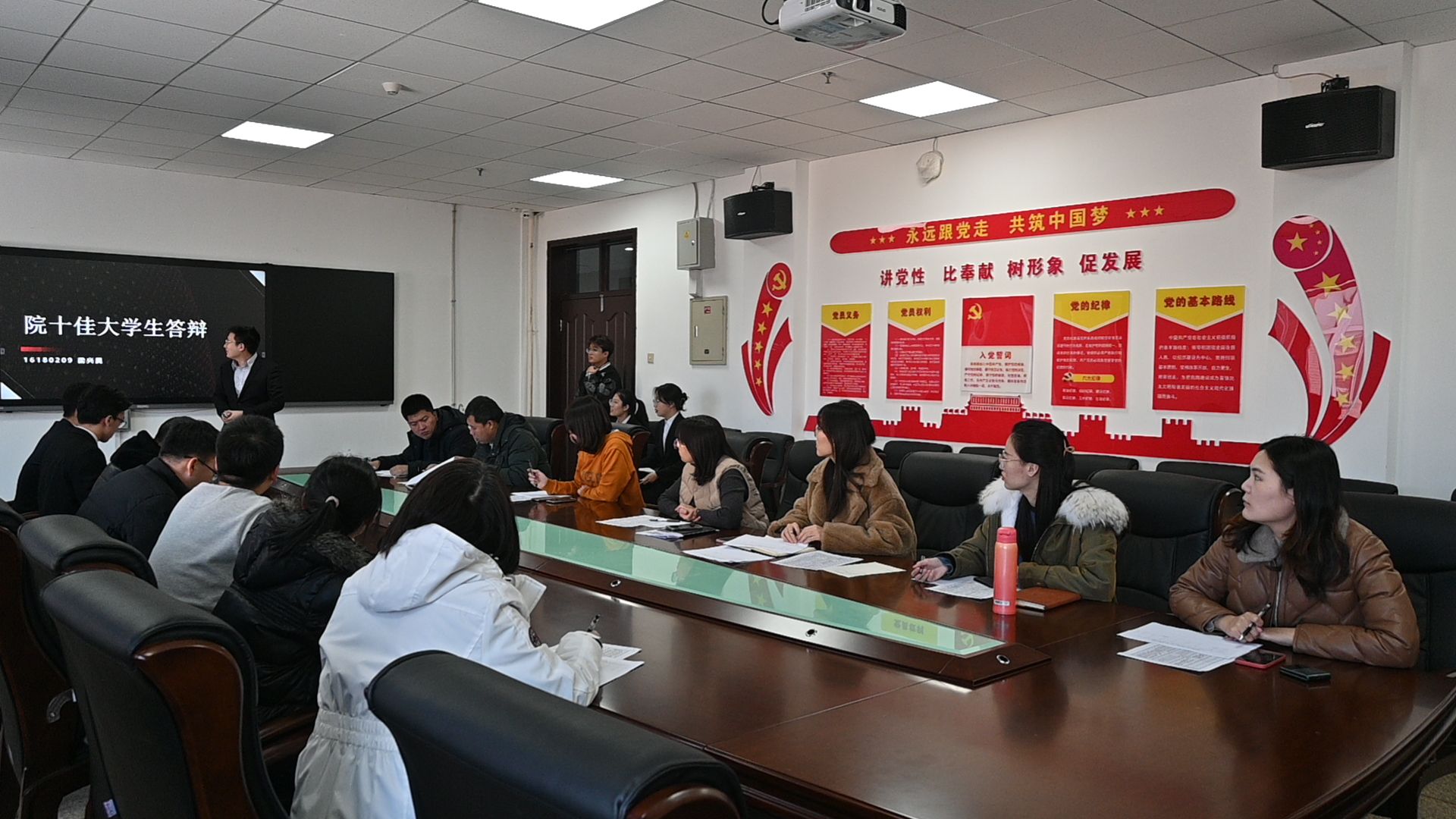活动伊始,主持人宣布本次答辩的规则。随后,参与答辩的同学按照顺序依次上场,全方位地阐述了自己在学习成绩、学生工作、社会实践、科研状况等方面的成果。之后进行的是“十佳班级”答辩,各班代表就班级整体学习情况、社会实践活动、班团建设情况等方面进行答辩。答辩过程中评委老师们认真倾听,对优秀学生们取得的优秀成果表示赞许,并仔细斟酌进行打分。全部同学完成答辩后,本次答辩会圆满结束。