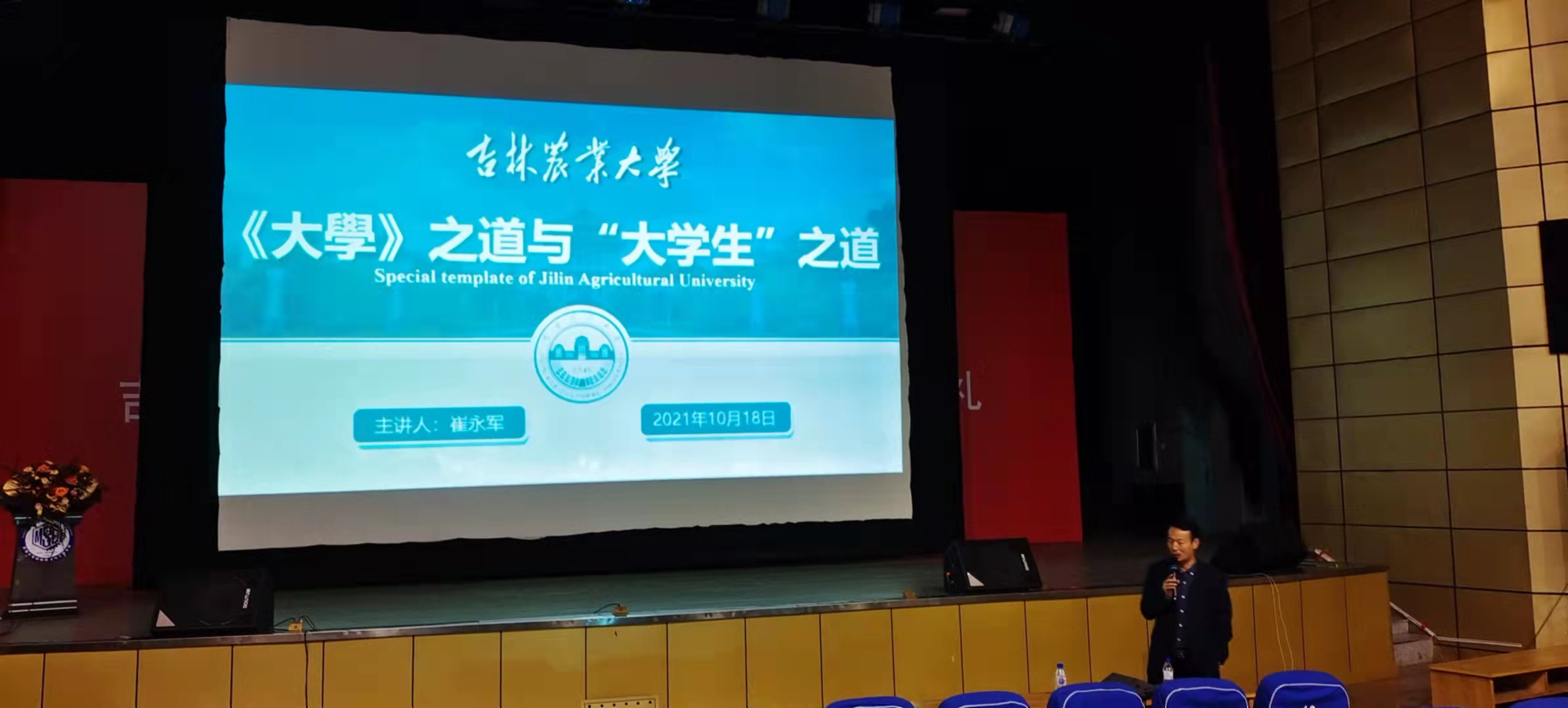 “做人篇”由崔永军老师为大家呈现,崔永军老师在农村社会建设与社会治理能力现代化、儒家文化传承与发展研究等方面的研究建树颇丰。报告中,他用深邃而富有哲理的语言为大家讲述了我国古代多位先贤的思想和多位西方哲人的见解,涤荡了同学们的心灵,激发了同学们内心的智慧。