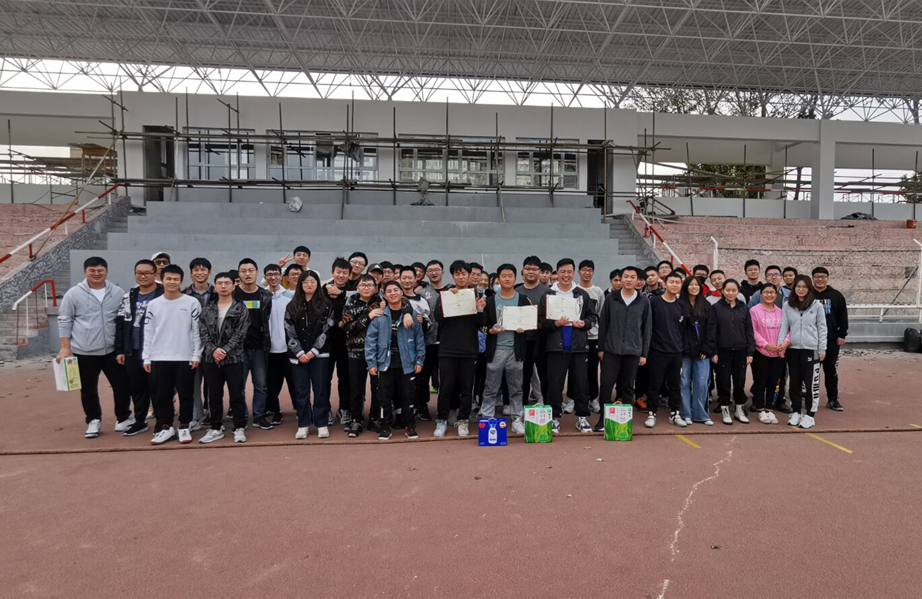 比赛共分为三个阶段,第一阶段由各班班长进行抽签决定小组赛名单,决出四个胜利班级后再进行抽签,两两对决,每组胜者之间决出冠亚军,败者之间决出季军。班级虽然不同,但相同的是班级成员之间的默契,每个人的拼搏精神与奋斗精神。每场比赛都异常激烈,男生们拼尽全力,女生也毫不示弱。比赛过程高潮迭起,精彩纷呈,体育场充斥着无限的青春和活力。在体育场主席台前举行了颁奖仪式,由刘艳丰老师为获奖班级颁发奖状奖杯及奖品。