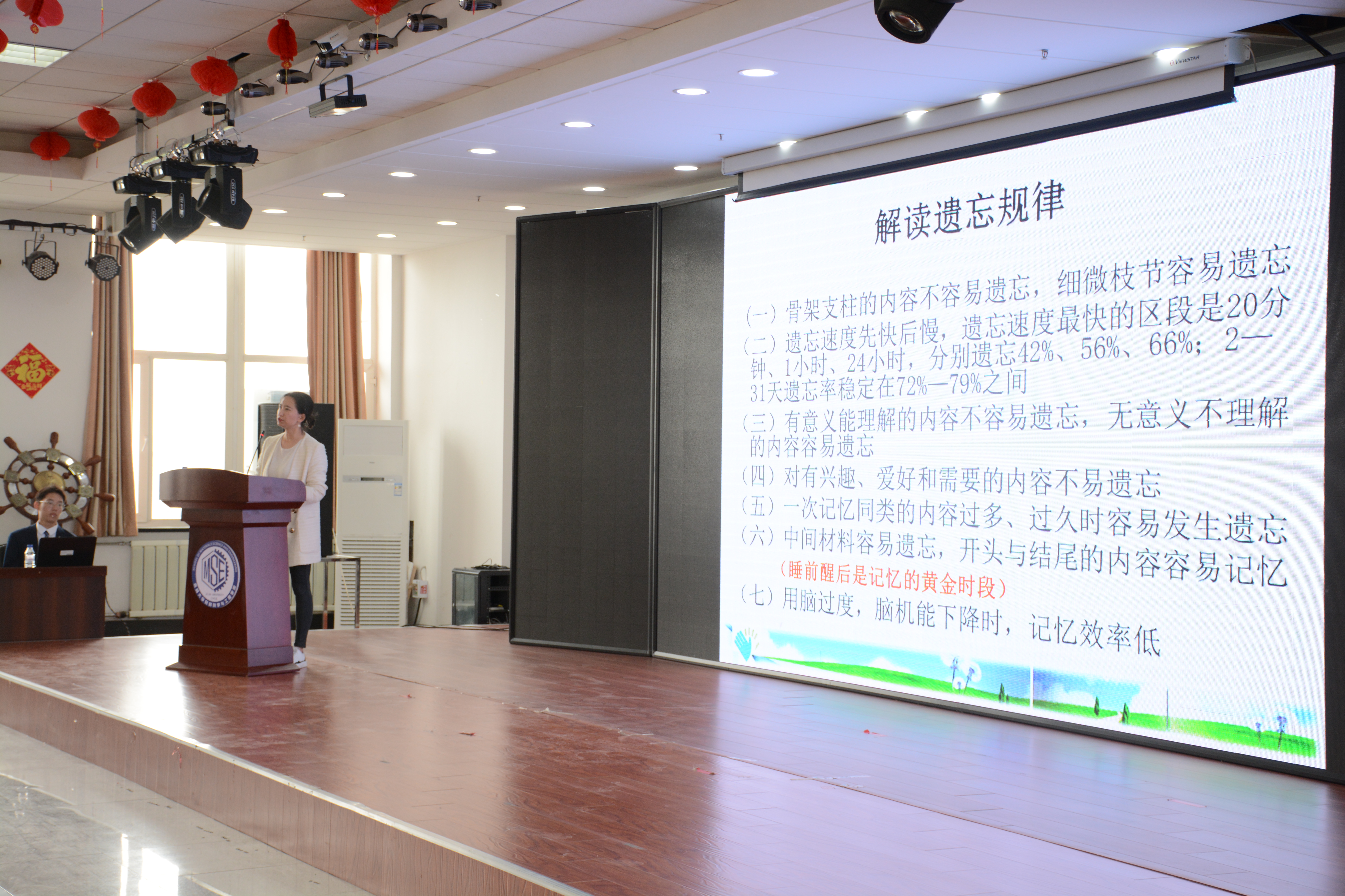 讲座开始之前,华蕊老师为左老师颁发了“旗帜领航导师团导师”聘书。讲座中,左老师首先介绍了本次讲座的主题“积极、理性、平和地进行心态调试”,通过解读“艾宾浩斯遗忘曲线”告诉同学们遗忘的速度是先快后慢,每个人都有自己的特点,我们应当找到适合自己的记忆方法提高学习效率。其次向同学们详细介绍什么是压力以及压力出现的预警信号,探讨压力产生的原因,明确压力的来源,并从生理反应、认知反应、情绪状态、行为表现四个方面列举出现压力时的表现。还向同学们介绍了多种缓解焦虑的方法,并引导同学们通过调整睡眠、改变拖延、进行时间管理以及调整个人期待和抱负水平来减轻焦虑情绪。