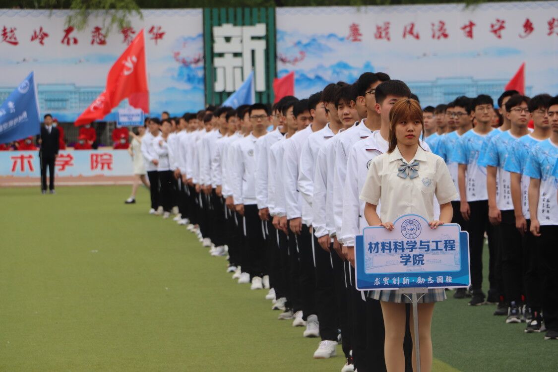 前卫南区体育场成功举行。运动会开幕式上,材料学院方队的同学们精神抖擞,英姿飒爽,以自信的姿态,响亮的口号,展现出了材料学院昂扬向上的精神风貌。