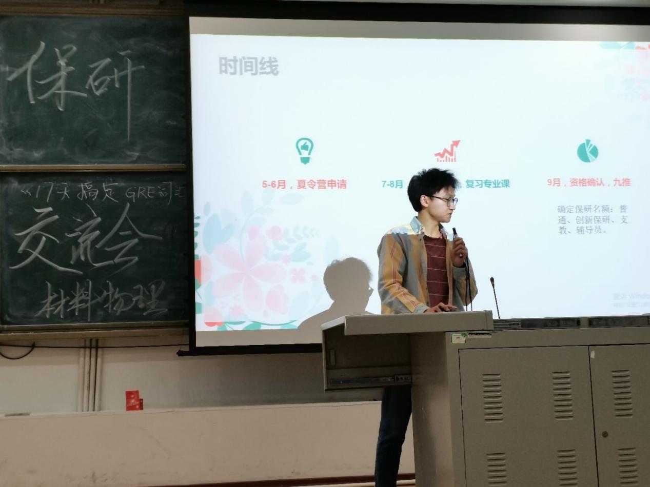 材料物理专业于5月16日晚18:30在前卫南区经信楼F3教室举办了考研保研经验交流会,材料物理专业辅导员辛颖出席,2020级、2019级、2018级全体学生参会。