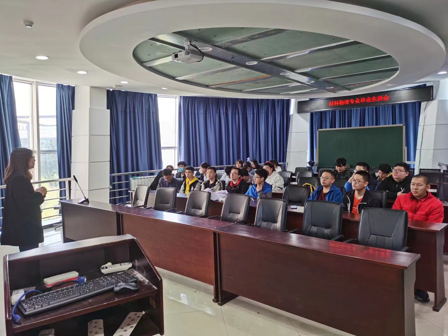 材料物理专业于2021年4月30日组织分班级召开了毕业生会议,会议由辅导员辛颖老师主持,毕业生全员参会。