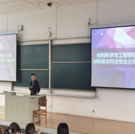 于11月12日在逸夫教育大楼举办了2019级材料类本科生专业分流宣讲说明会。学院副院长王文权、无机非金属材料工程系主任苗世顶、高分子材料与工程系主任李义、金属材料工程系主任杨春成,材料成型及控制工程系主任王金国、教务办公室全体人员、全体2019级本科生参加了本次会议。