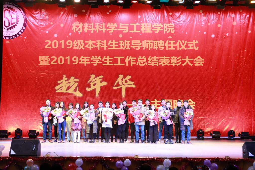 于南岭校区文化活动中心举办2019级本科生班导师聘任仪式暨2019年学生工作总结表彰大会以及“趁年华”主题晚会。学院党委书记刘远、东区学生办公室主任马艳秋、学院党委副书记、副院长兼东区综合办公室副主任李东生、副院长朱永福、王文权、郑孝义、东区学生工作办公室柴媛以及学院2019级本科生班导师和学院全体辅导员老师出席了本次活动。