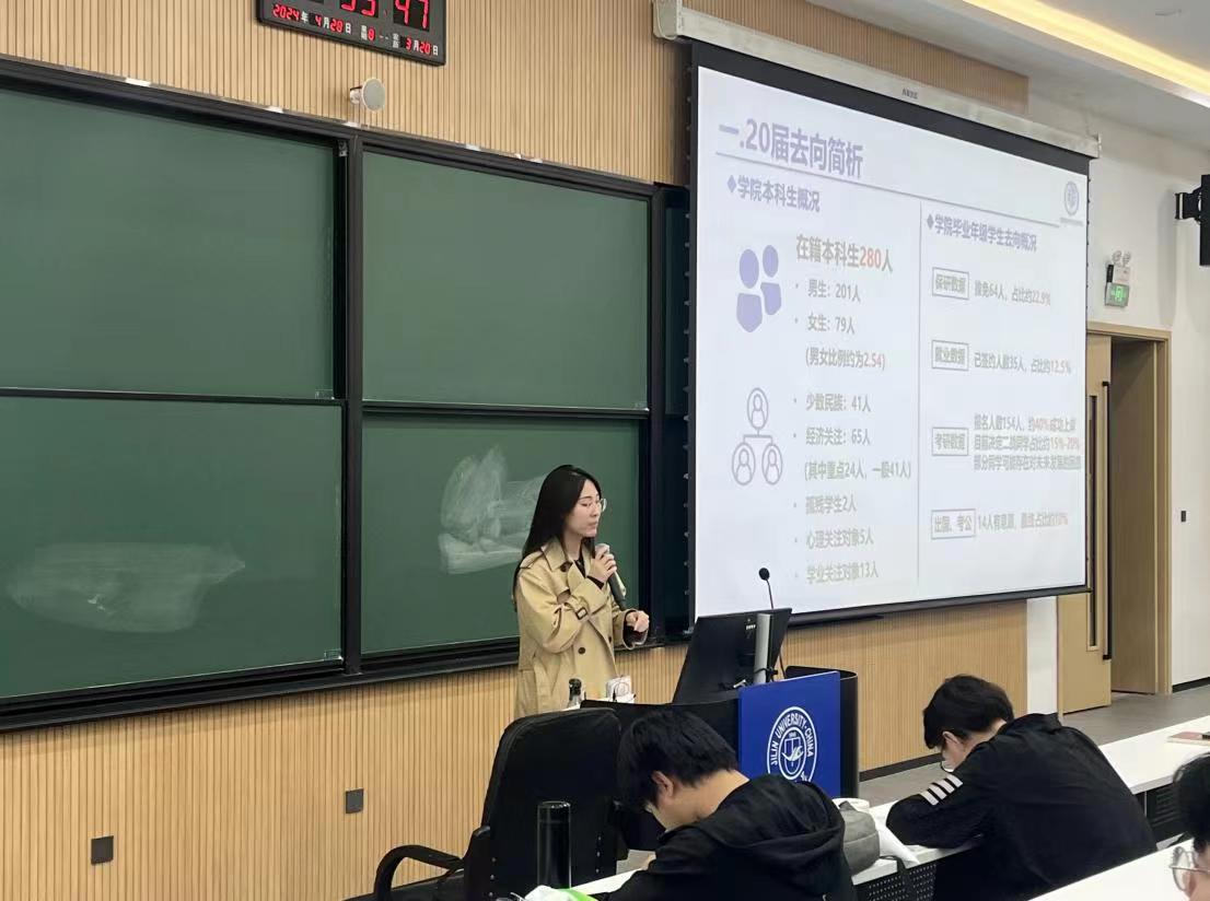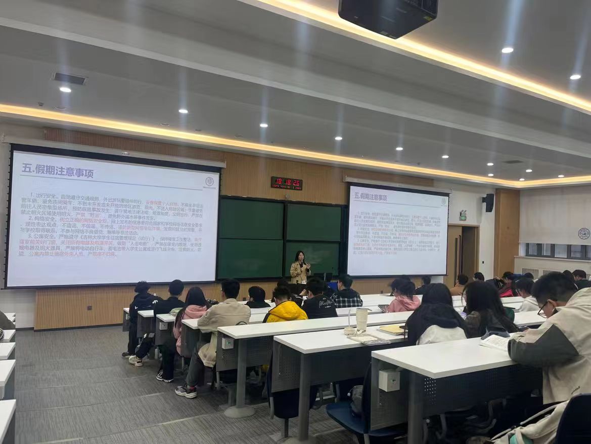 首先,王晗老师向各位同学介绍了20级毕业年级同学的目前的去向,对同学们以后的发展方向做出了分析,同时分析了22级本科生的现状,指出目前的问题并提出解决方案,希望每一个同学都能拥有更加充实丰富的大学生活。其次,老师对于分流后各教学班负责人的确定提出了具体要求。然后,老师对本院在运动竞技方面取得的各种成绩做出了总结,也对即将到来的运动会进行了动员,鼓励同学们在学习的同时也加强体育运动。最后,王晗老师向同学们详尽的提出了五一假期的注意事项,有出游计划的注意人身财产安全,留校同学另外需要注意寝室用电用水安全,希望同学们可以安全快乐地度过假期。