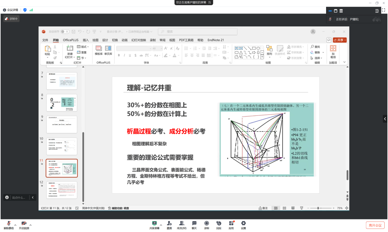 本次会议由2022级材料类专业辅导员王晗老师主持,学院2022级学业关注对象和目前仍有挂科的同学参加会议,王晗老师就同学们迄今为止的学习情况做了总结,提醒同学们期末复习对于巩固知识、提升成绩的重要性,同时也告诉同学们应勤学好问、互帮互助,要有方法有目的地去学习。随后王晗老师邀请了年级各专业4名学习成绩优异的同学来为大家讲解期末复习的重点和方向。几位同学从考试时间安排、每科目复习侧重点、应参考的复习资料等方面入手,将自己的学习方法分享给大家,并强调同学们要将教材、PPT、学习通以及学在吉大等课程资源利用好。最后,王晗老师总结了同学们的发言,同时表达了对于参会同学们的期望,希望各位同学列出期末复习计划,并提出本年度考试目标。