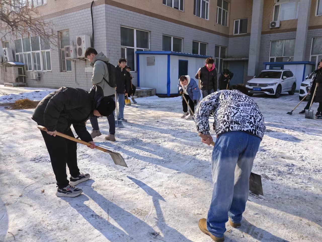组织2023级本科生进行清雪除冰活动。同学们积极参与了本次清雪除冰活动。