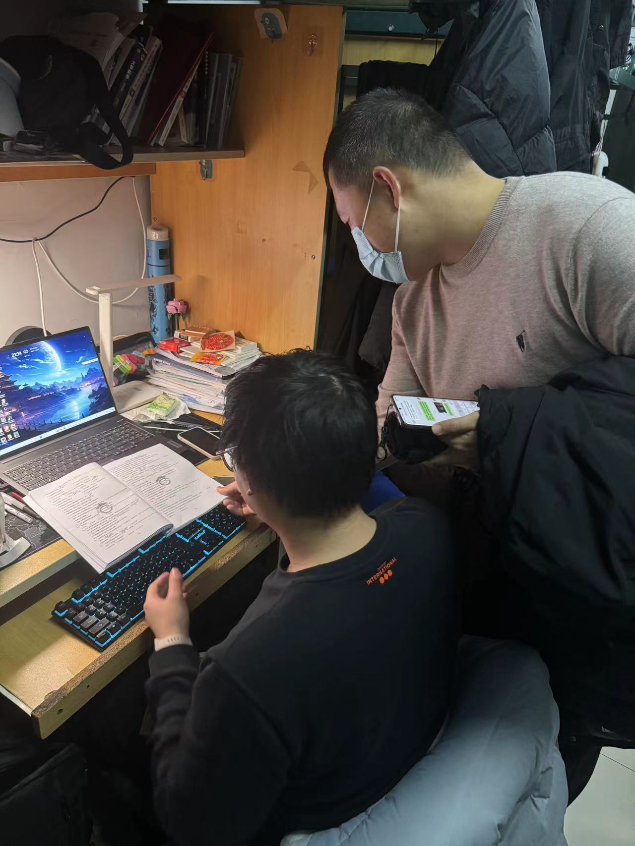 本次查寝过程中,严老师重点关注同学们的学习和生活方面以及同学们的备考情况;嘱咐同学们要把学习放在首位,放平心态。同时,严老师还注重寝室卫生问题,提醒同学们要注意勤通风,勤打扫,预防冬季流感。此外,明确提出要求,在离校前要按标准打扫寝室、切断电源,做好离校前寝室安全稳定自检自查工作。