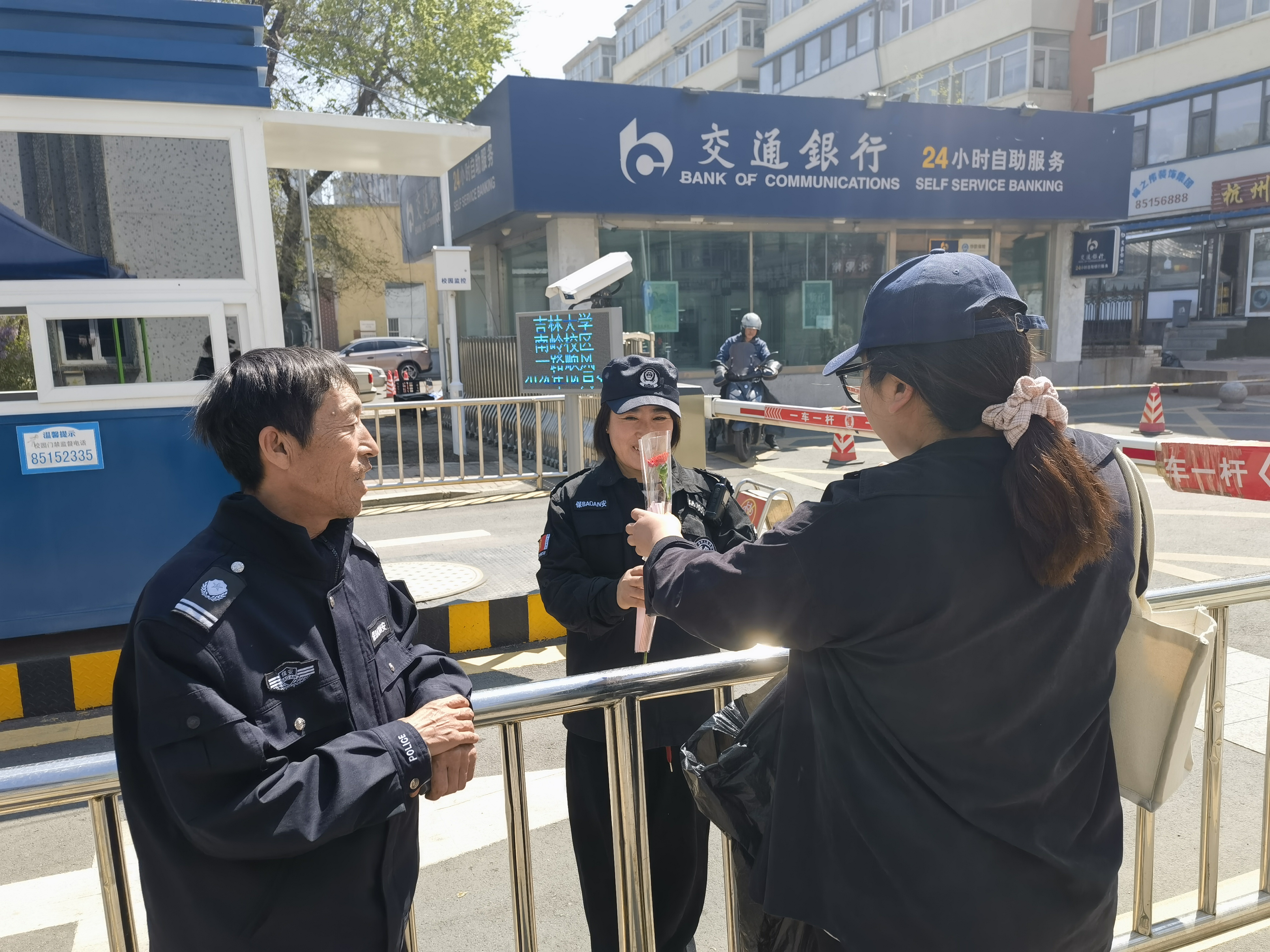 严老师与学院学生代表前往了南岭校区的各个岗位,向辛勤工作的校园劳动工作者们送上节日的祝福与问候。在十、十一、十二、十三公寓,学生们亲自走进宿舍楼,向宿管阿姨们送上了真切的问候。随后,他们又来到勤工楼、保卫处、材料馆、逸夫楼,以及学校的东门、西门、南门,向辛勤守护校园的门卫叔叔阿姨们致以真诚的祝福,并送上了美丽的鲜花与精致的贺卡。