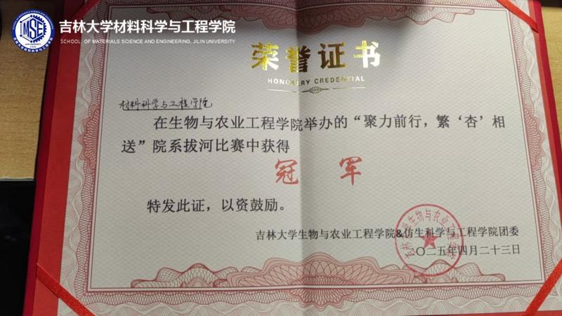 材料学院代表队一路过关斩将,先后击败多支队伍,以小组赛全胜的战绩挺进总决赛。在总决赛的巅峰对决中,队员们紧握长绳、重心下压,在拉拉队震天的呐喊声中,以势如破竹的姿态连下三局,将团结协作的力量诠释得淋漓尽致。