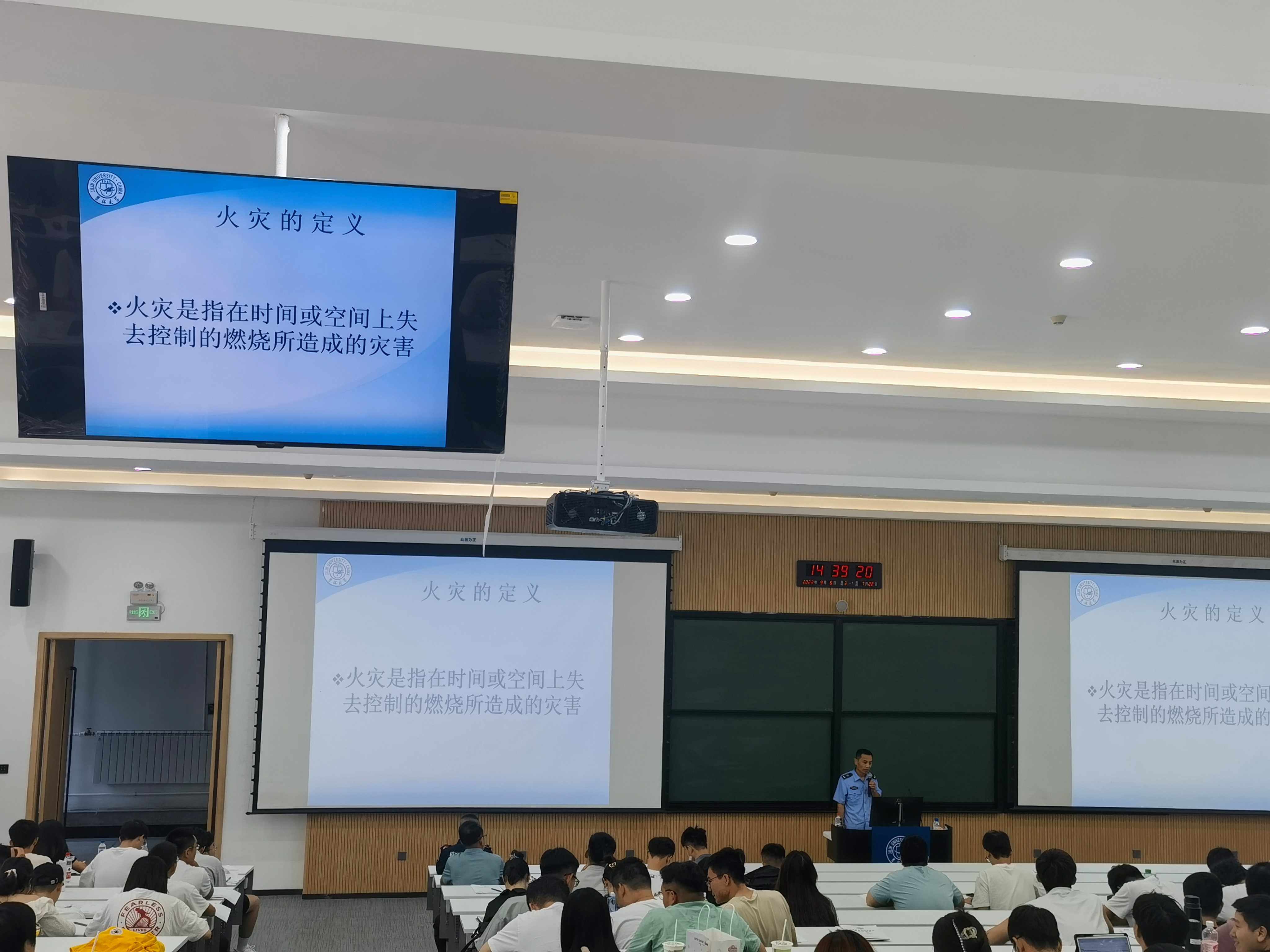 东区保卫处刘海江老师介绍了常见的校园火灾隐患,提醒各位同学注意用电用火安全,从源头遏制火灾发生的可能性,要求同学们明确火灾发生后的紧急处理办法。东区保卫处田刚老师从实例出发,从盗窃、抢劫、诈骗、电信诈骗等方面给同学们拉响警钟,通过列举常见的校园诈骗手段,提醒同学们提高防范意识。增强各位新生的安全意识,加强安全知识储备,树牢底线思维,引导其重视在校期间的学习、生活和人身安全,营造平安和谐的校园安全氛围,共同筑牢校园安全防线。