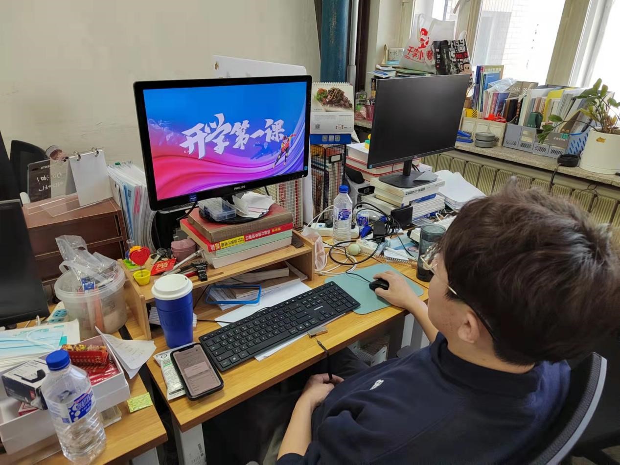 积极响应省教育厅关于组织收看“奋斗有我,一起向未来”全省高校思政课“开学第一课”的通知,由于疫情的原因,学院研究生办公室主任刘徽老师、研究生思政秘书杨美晨老师组织本院全体研究生在2022年3月7日下午13: 30-14: 30线上收看由马光焱教授主讲的2021—2022 学年度第二学期“奋斗有我,一起向未来”全省高校思政课“开学第一课”。