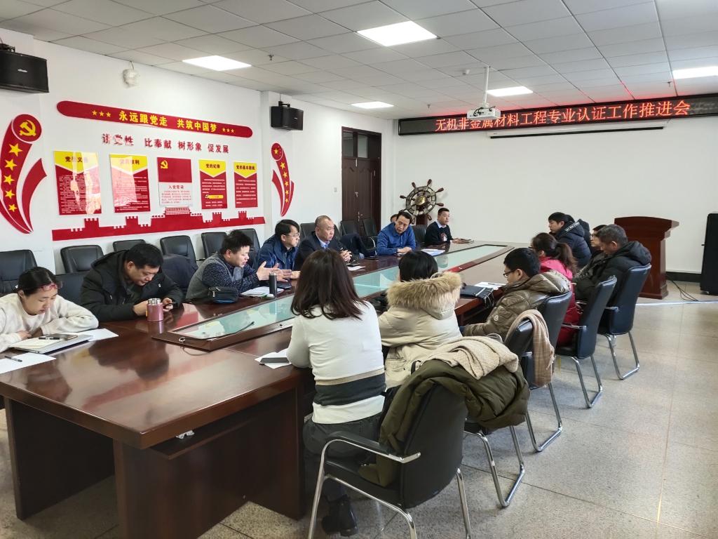 2020年1月3日,无机非金属材料工程专业认证工作推进会在机械材料馆410会议室召开。本次会议由学院教学副院长王文权主持,党委书记刘远等学院领导班子成员、无机非金属材料工程专业全体教师及教务办、学工办负责老师参加了本次推进会。