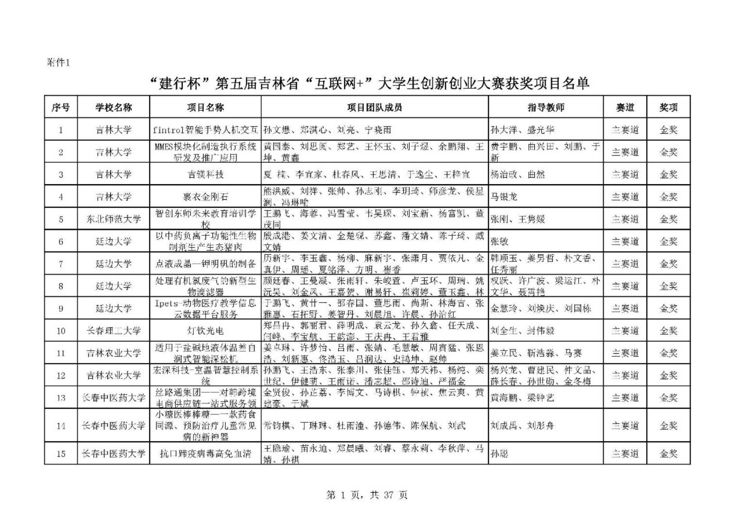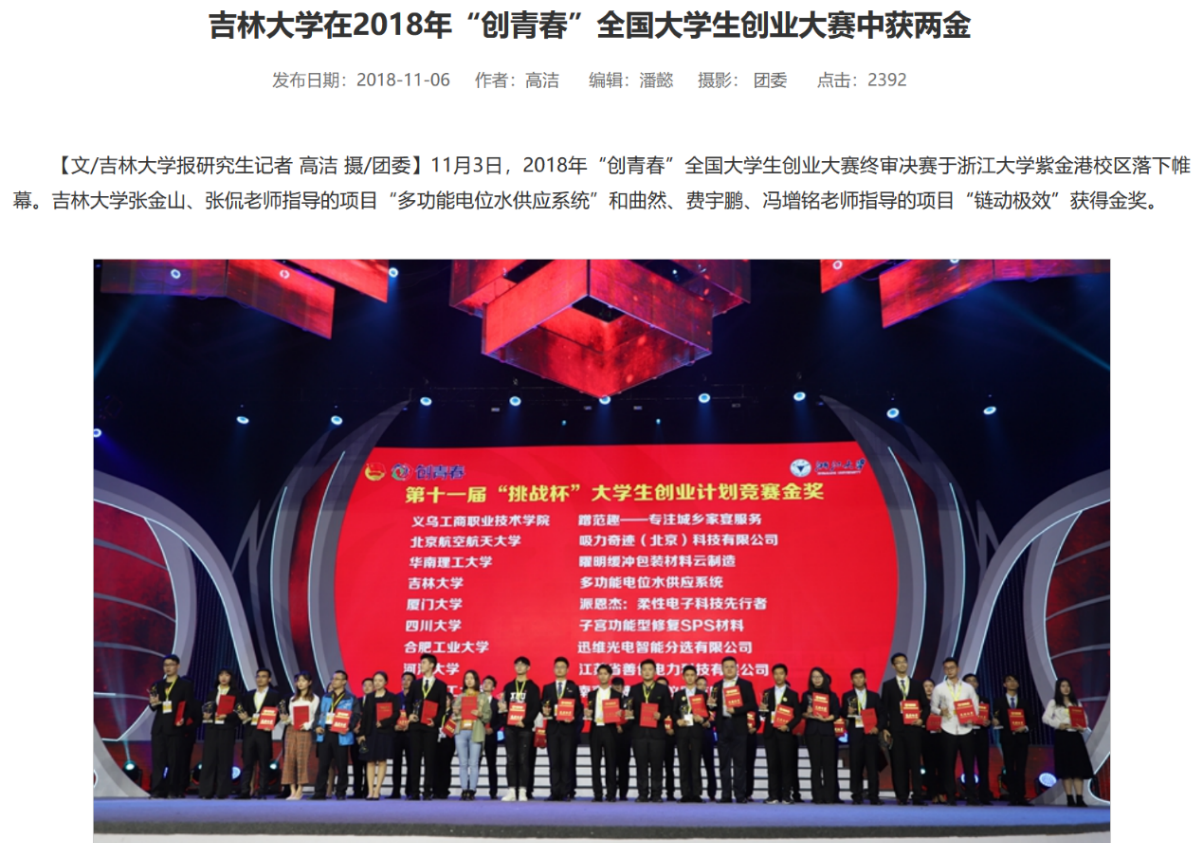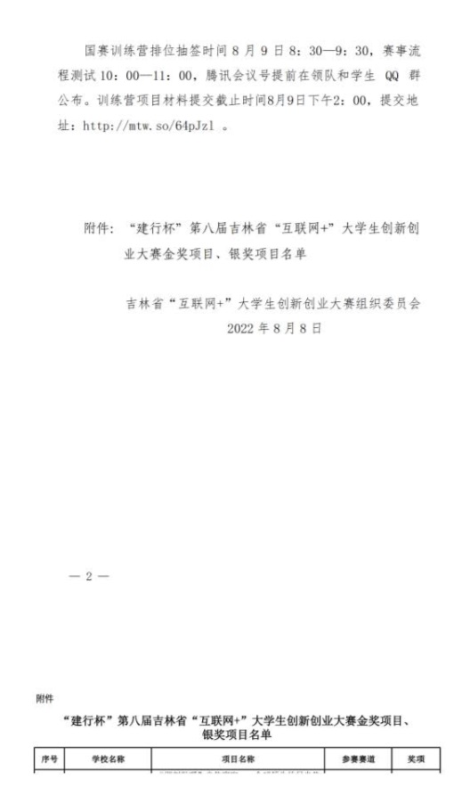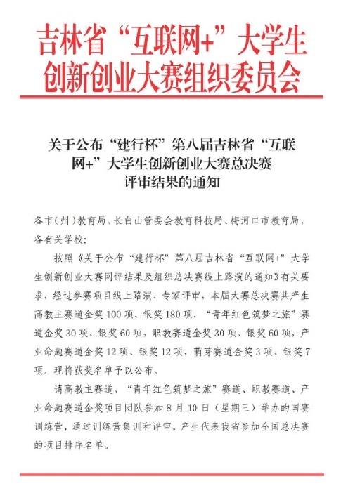 9. “建行杯”第八届吉林省“互联网+”大学生创新创业大赛,金奖,吉林省教育厅、科技厅,2022.08.08