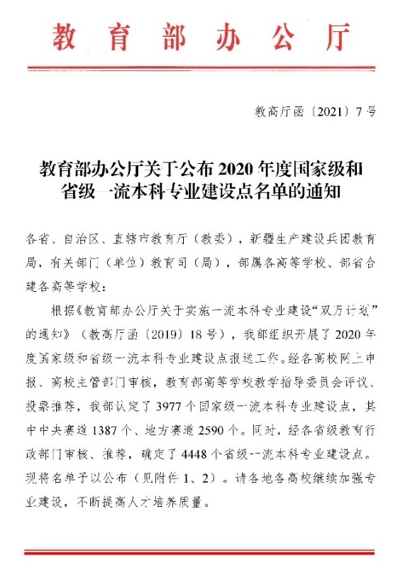 7-8. 2021年度省级一流本科专业建设点(2个):材料科学与工程、无机非金属材料与工程,教育部办公厅,2022.06.13